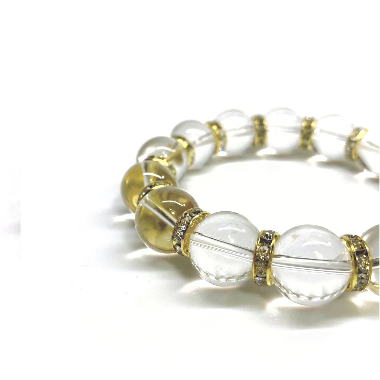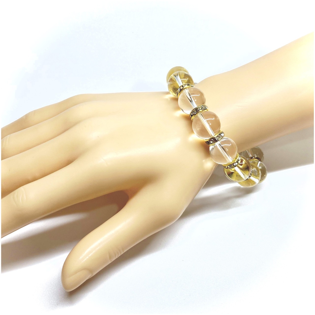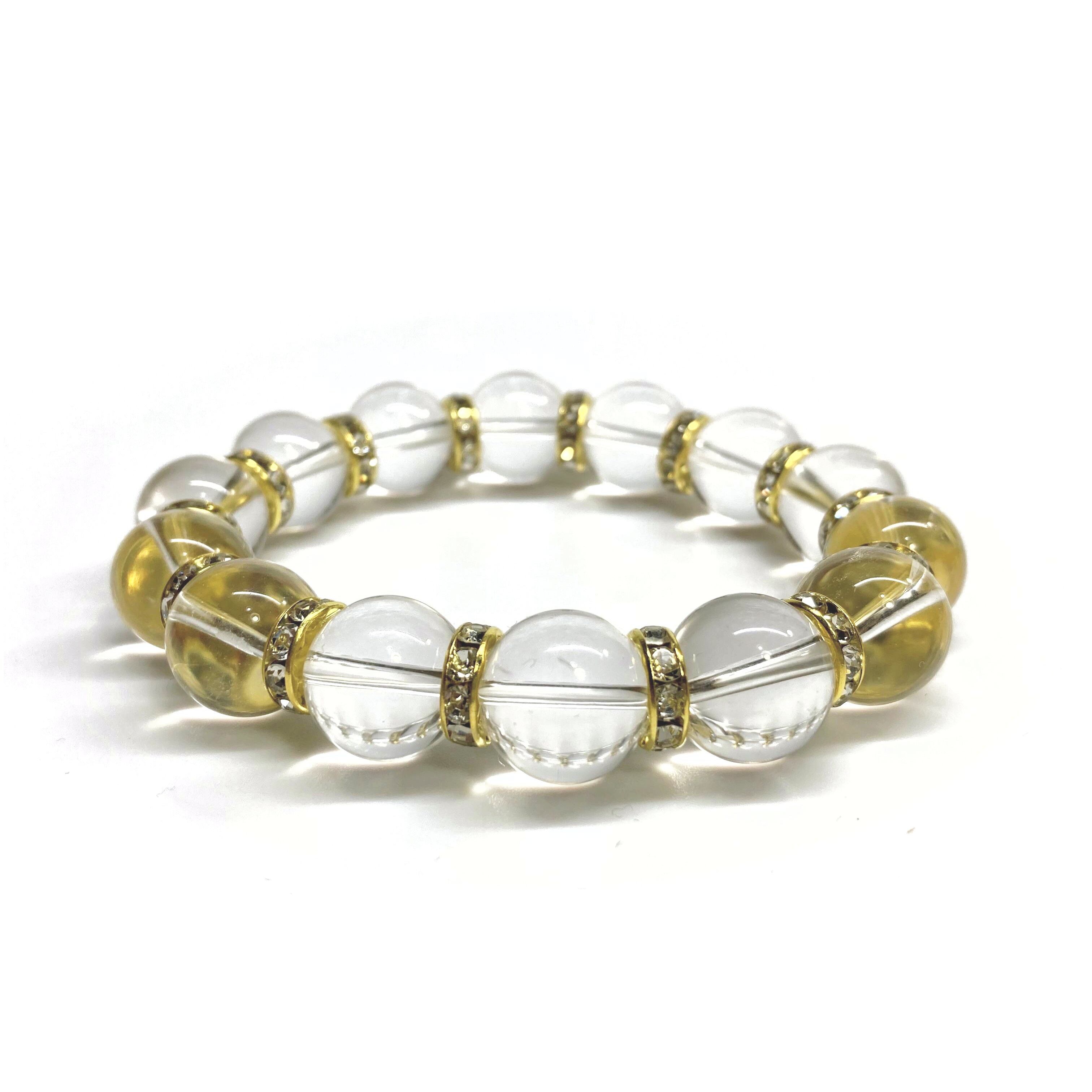 こちらは、14mm玉の水晶を使用した天然石ブレスレットです。シンプルなデザインですのでどんなコーディネートとも合わせ易いブレスレットです。石大きさはインパクトを与えてくれる大きさの14mm玉を使用しています。内周約17cmです。数に限りがございますので気になる方はお早めにどうぞ。