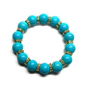 こちらは、14mm玉のターコイズを使用したブレスレットです。シンプルなデザインですのでどんなコーディネートとも合わせ易いブレスレットです。石との間にはロンデルを挟み高級感を演出しています。石大きさはインパクトを与えてくれる大きさの14mm玉を使用しています。内周約17cmです。数に限りがございますので気になる方はお早めにどうぞ。