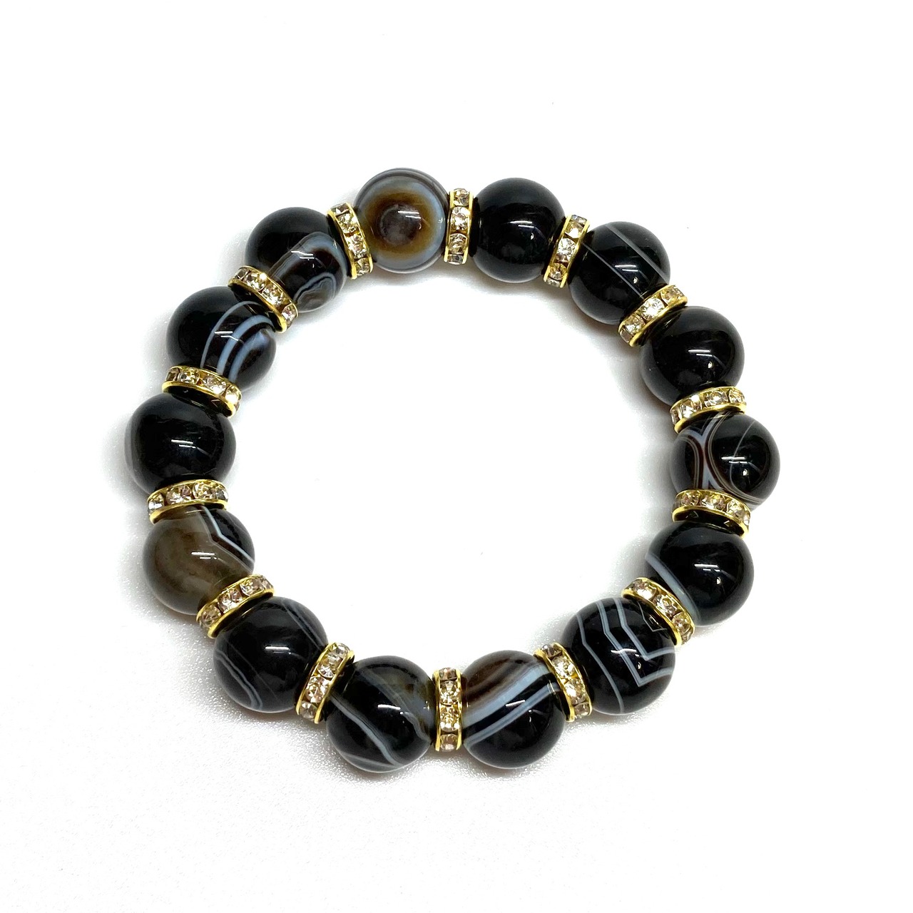 こちらは、14mm玉のチベットアゲート(天眼石)を使用した天然石ブレスレットです。シンプルなデザインですのでどんなコーディネートとも合わせ易いブレスレットです。石大きさはインパクトを与えてくれる大きさの14mm玉を使用しています。内周約17cmです。数に限りがございますので気になる方はお早めにどうぞ。