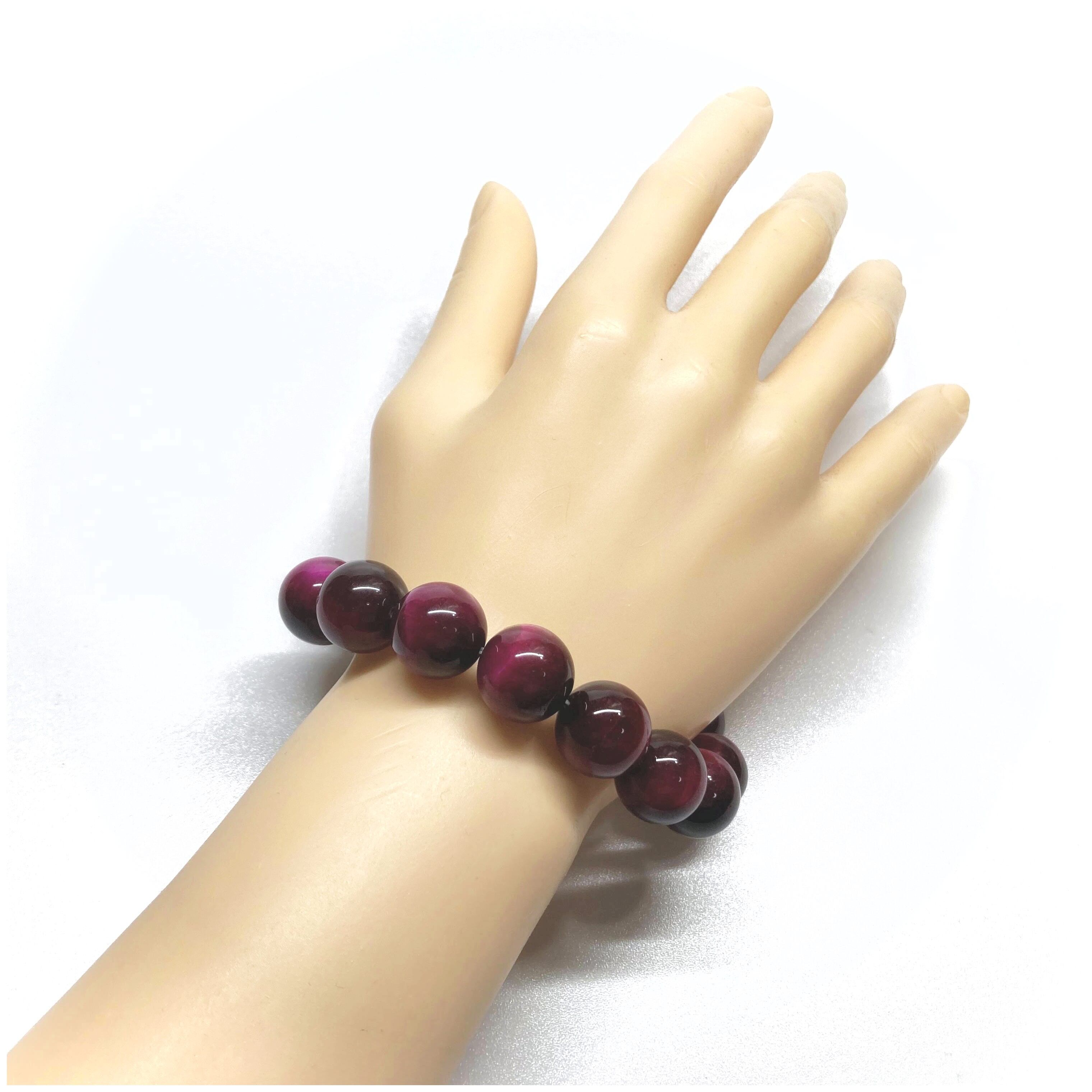 こちらは、14mm玉のピンクタイガーアイを使用したブレスレットです。シンプルなデザインですのでどんなコーディネートとも合わせ易いブレスレットです。石大きさはインパクトを与えてくれる大きさの14mm玉を使用しています。内周約17cmです。数に限りがございますので気になる方はお早めにどうぞ。