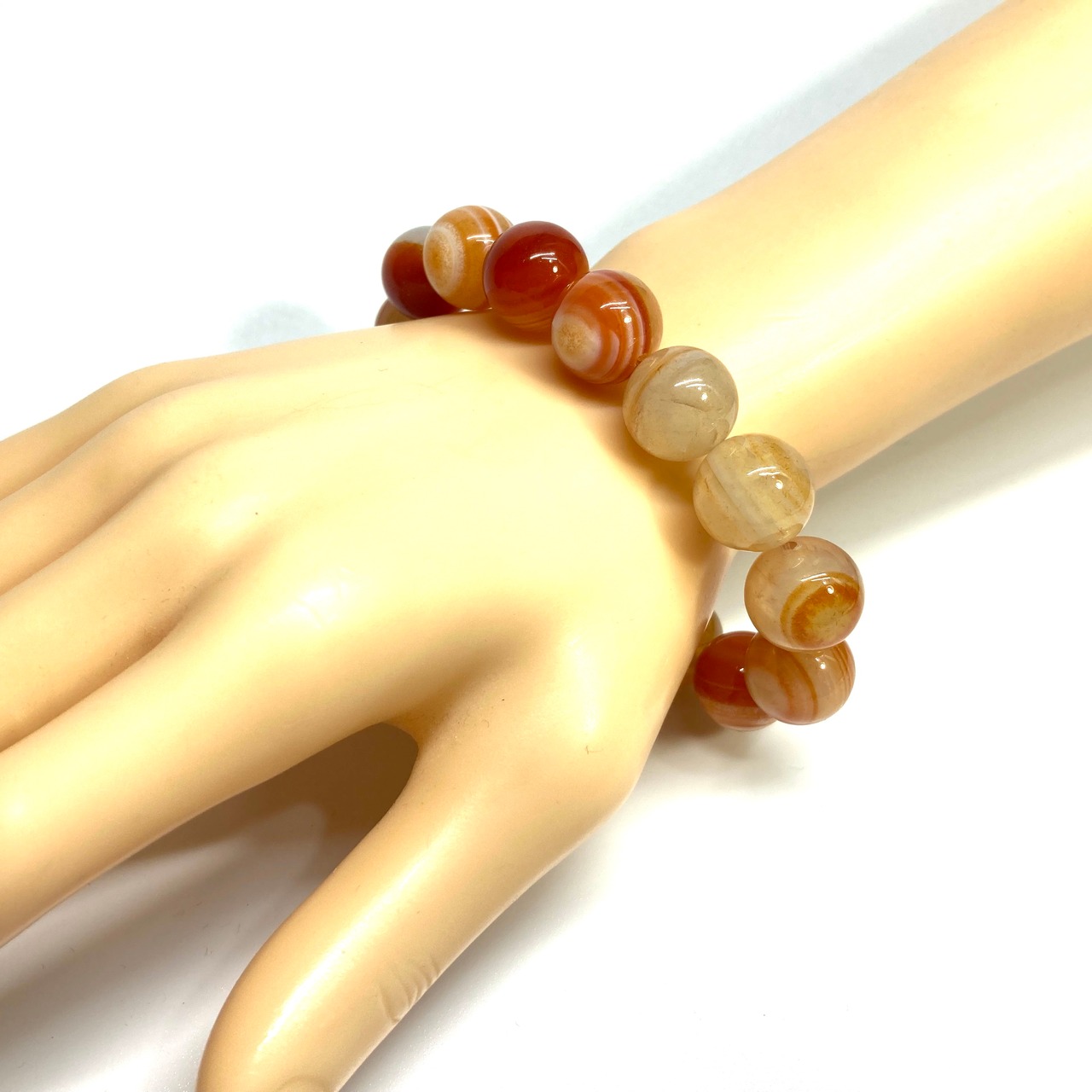 こちらは、14mm玉のカーネリアン・サードニクス(レッド天眼石)を使用した天然石ブレスレットです。シンプルなデザインですのでどんなコーディネートとも合わせ易いブレスレットです。石大きさはインパクトを与えてくれる大きさの14mm玉を使用しています。内周約17cmです。数に限りがございますので気になる方はお早めにどうぞ。