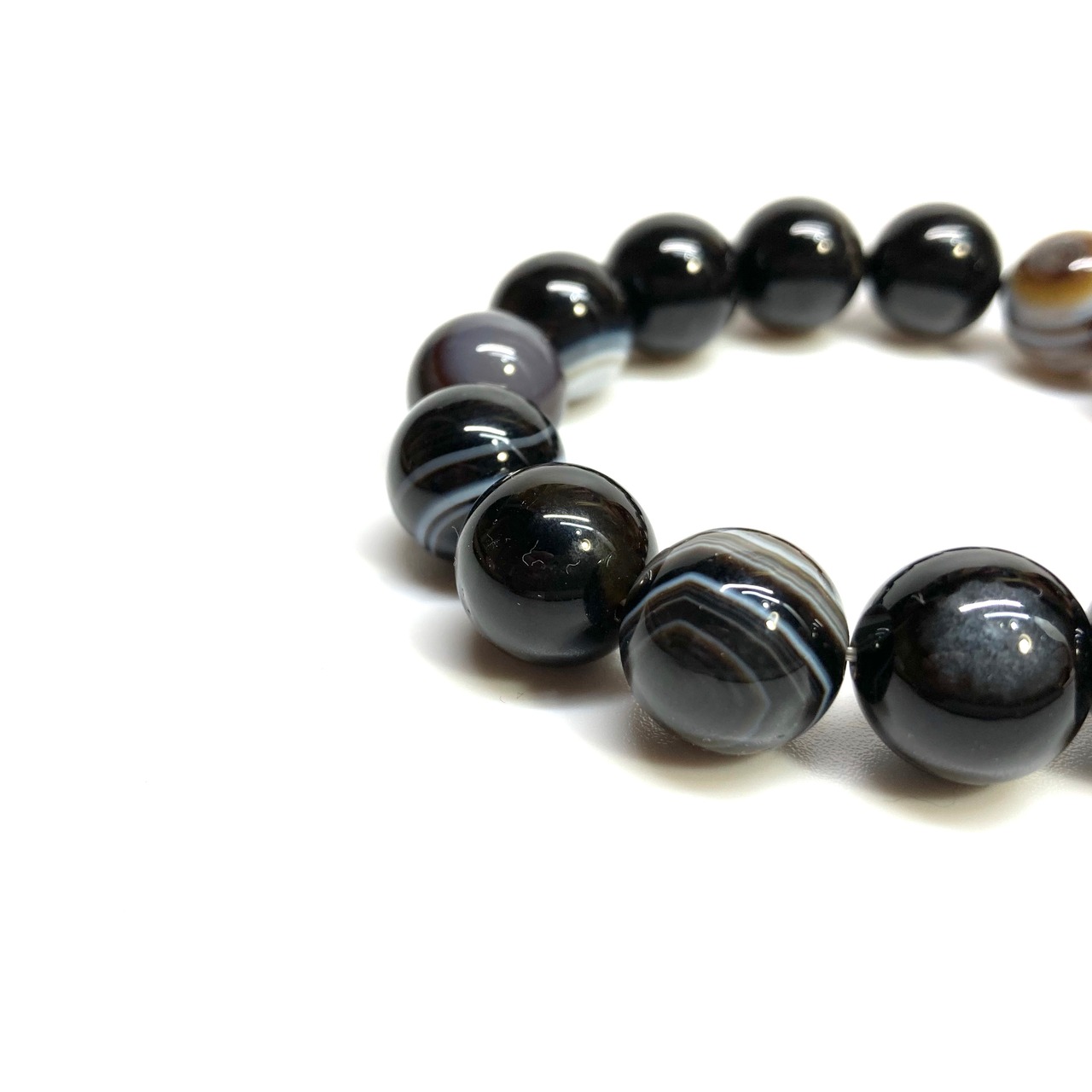 こちらは、14mm玉のチベットアゲート(天眼石)を使用した天然石ブレスレットです。シンプルなデザインですのでどんなコーディネートとも合わせ易いブレスレットです。石大きさはインパクトを与えてくれる大きさの14mm玉を使用しています。内周約17cmです。数に限りがございますので気になる方はお早めにどうぞ。