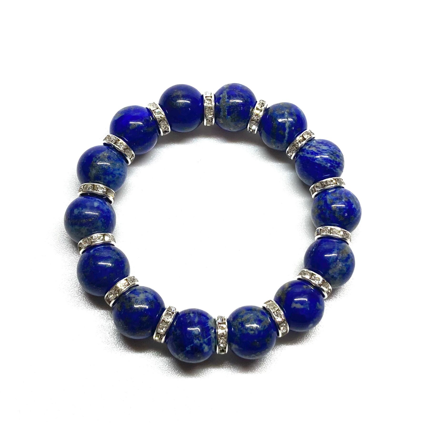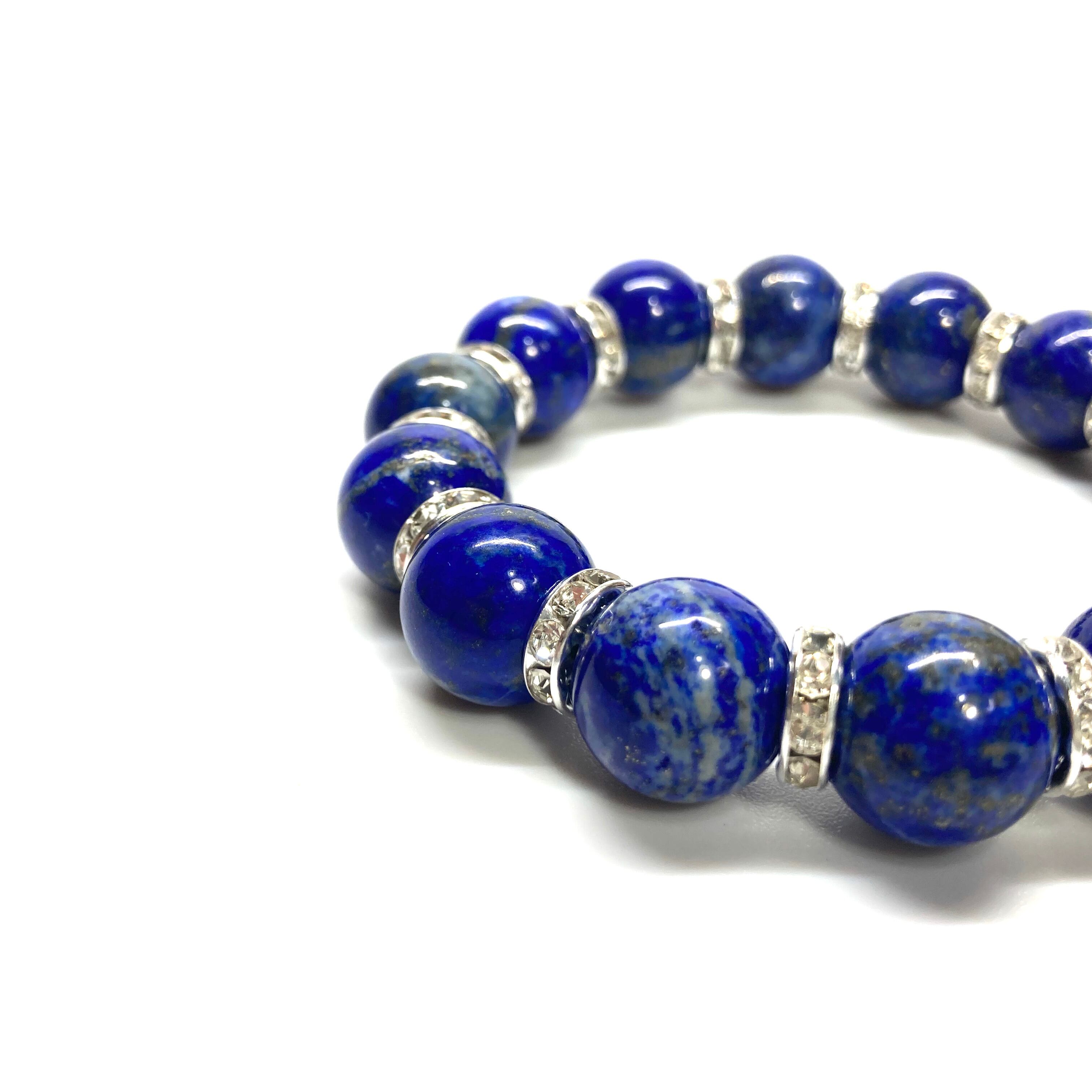 こちらは、14mm玉のラピスラズリを使用した天然石ブレスレットです。シンプルなデザインですのでどんなコーディネートとも合わせ易いブレスレットです。石との間にはロンデルを挟み高級感を演出しています。石大きさはインパクトを与えてくれる大きさの14mm玉を使用しています。内周約17cmです。数に限りがございますので気になる方はお早めにどうぞ。