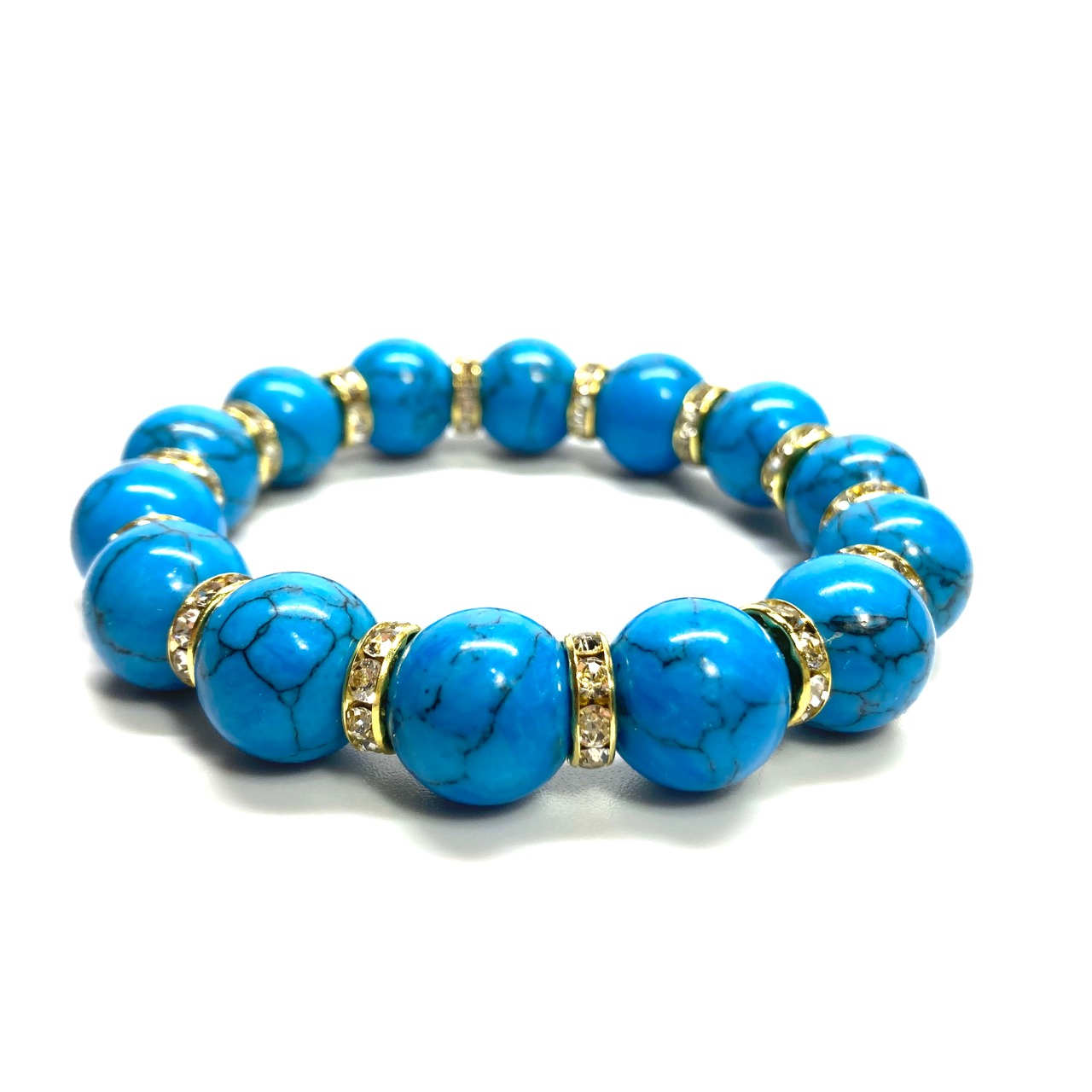 ターコイズ パワーストーン ブレスレット (ゴールド) 14mm メンズ・レディース 男性・女性 数珠ブレス 開運 ☆