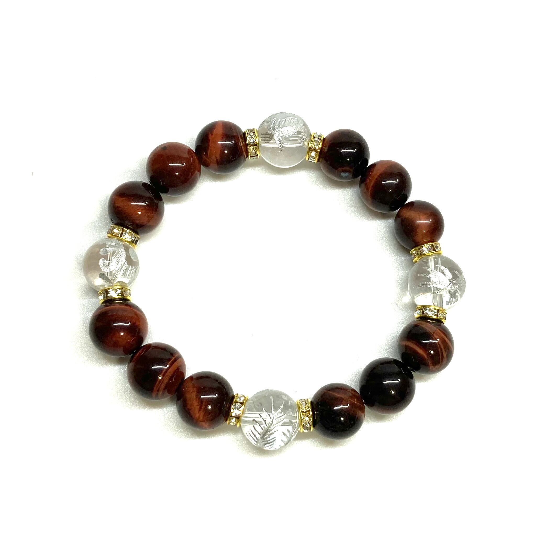 12mm 四神獣銀彫水晶×レッドタイガーアイ パワーストーン ブレスレット天然石 開運 ☆ 金運 ギャンブル運 お守り 青龍 白虎 玄武 朱雀 (ゴールド)メンズ・レディース 男性・女性 数珠ブレス 開運 ☆ | パワーストーン 天然石 Kinari&Co.