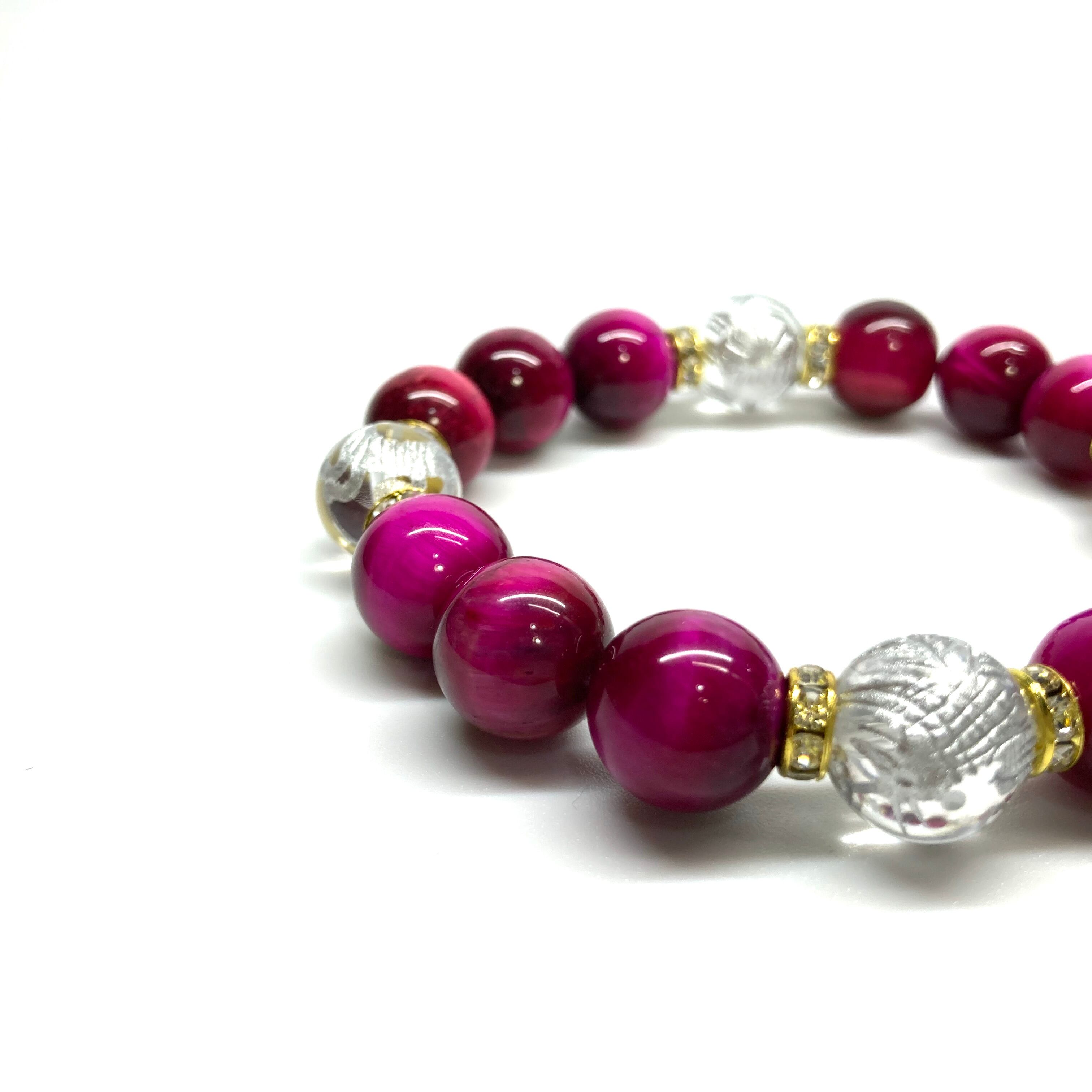 12mm 四神獣銀彫水晶×ピンクタイガーアイ パワーストーン ブレスレット天然石 運気上昇 開運 ☆ 恋愛運 お守り 青龍 白虎 玄武 朱雀 (ゴールド)メンズ・レディース 男性・女性 数珠ブレス 開運 ☆ | パワーストーン 天然石 Kinari&Co.