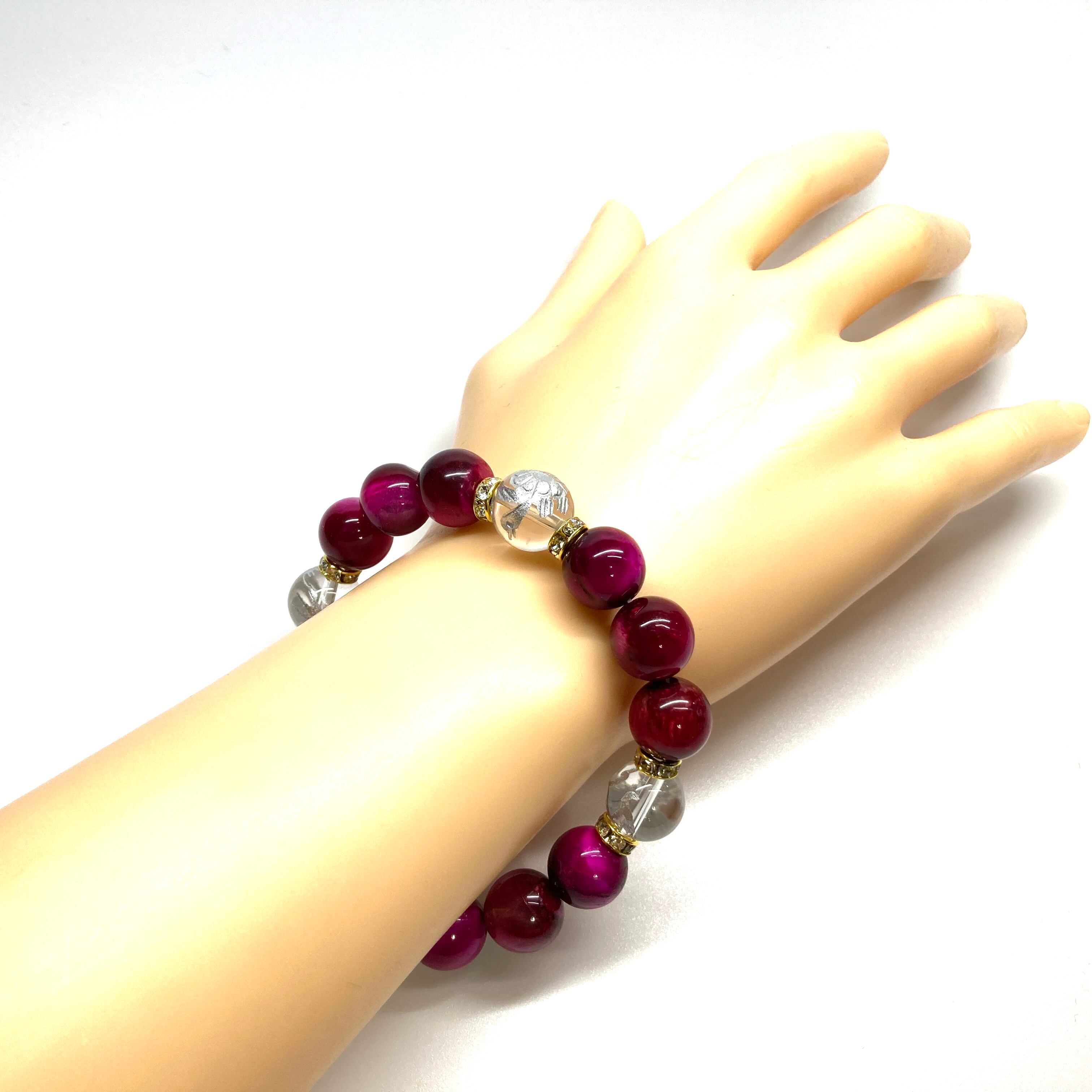 ご覧頂いているブレスレットは、四神獣銀彫水晶とピンクタイガーアイを組み合わせたブレスレット。守り神である四神とパワーストーンの組み合わせで運気の流れを引き寄せる強運ブレスレットです。シンプルなデザインで男女問わず、年齢問わずご使用頂けるデザインなっております。シンプルなデザインは日常のアクセントとして、仕事やビジネスカジュアル、パーティーや特別なイベントなど様々なシーン活用できます。また、ちょっと贈り物にも最適なブレスレットになっております。四神獣を身につけて厄災から身を守り、多くの運気を呼び込まれてください。