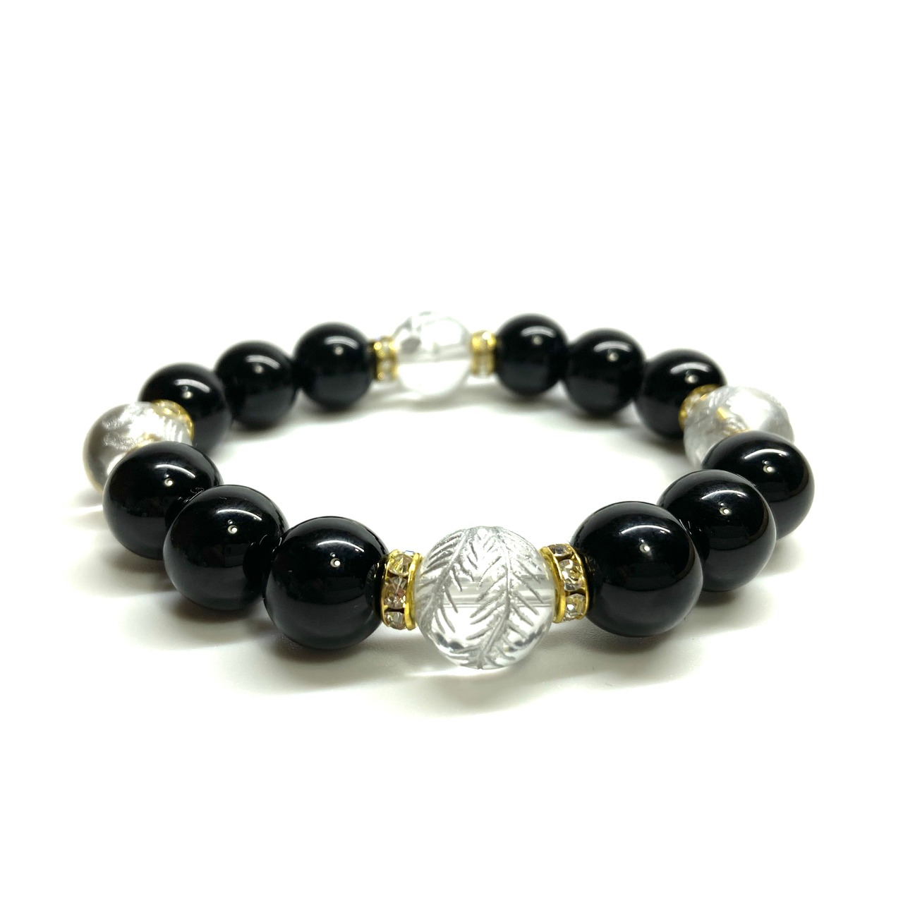 12mm 四神獣銀彫水晶×オニキス パワーストーン ブレスレット天然石 運気上昇 開運 ☆ 金運 健康運 厄払い お守り 青龍 白虎 玄武 朱雀 (ゴールド)メンズ・レディース 男性・女性 数珠ブレス 開運 ☆ | パワーストーン 天然石 Kinari&Co.