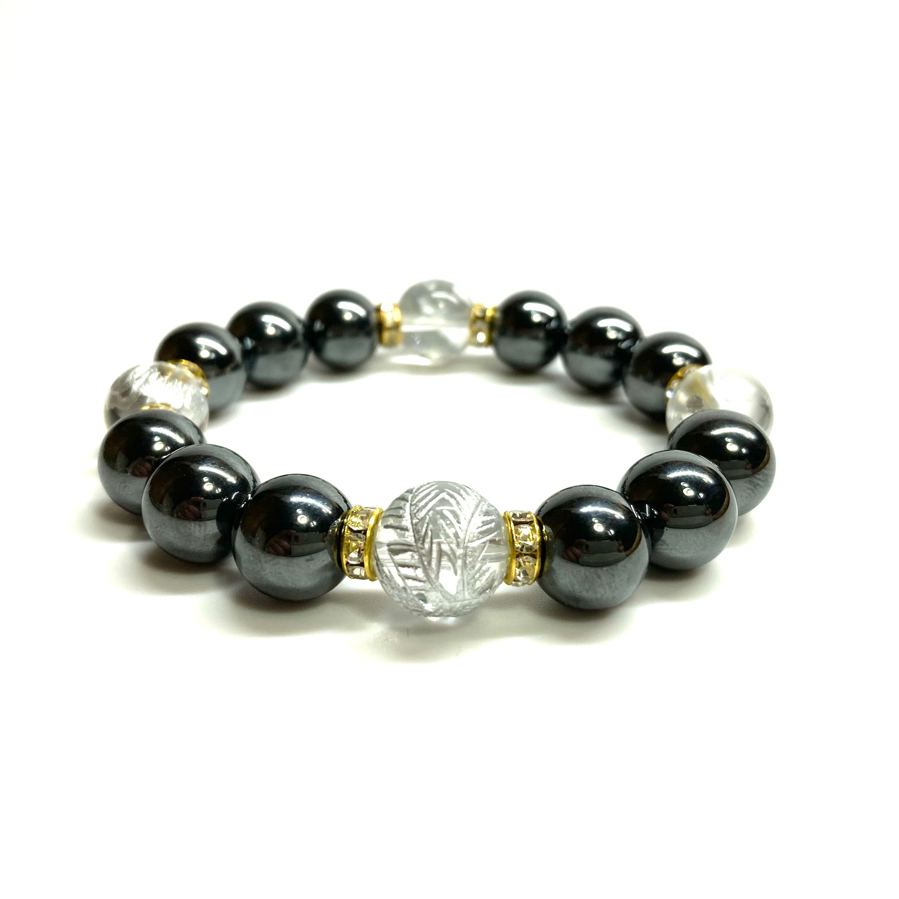 ご覧頂いているブレスレットは、四神獣銀彫水晶とヘマタイトを組み合わせたブレスレット。守り神である四神とパワーストーンの組み合わせで運気の流れを引き寄せる強運ブレスレットです。シンプルなデザインで男女問わず、年齢問わずご使用頂けるデザインなっております。シンプルなデザインは日常のアクセントとして、仕事やビジネスカジュアル、パーティーや特別なイベントなど様々なシーン活用できます。また、ちょっと贈り物にも最適なブレスレットになっております。四神獣を身につけて厄災から身を守り、多くの運気を呼び込まれてください。