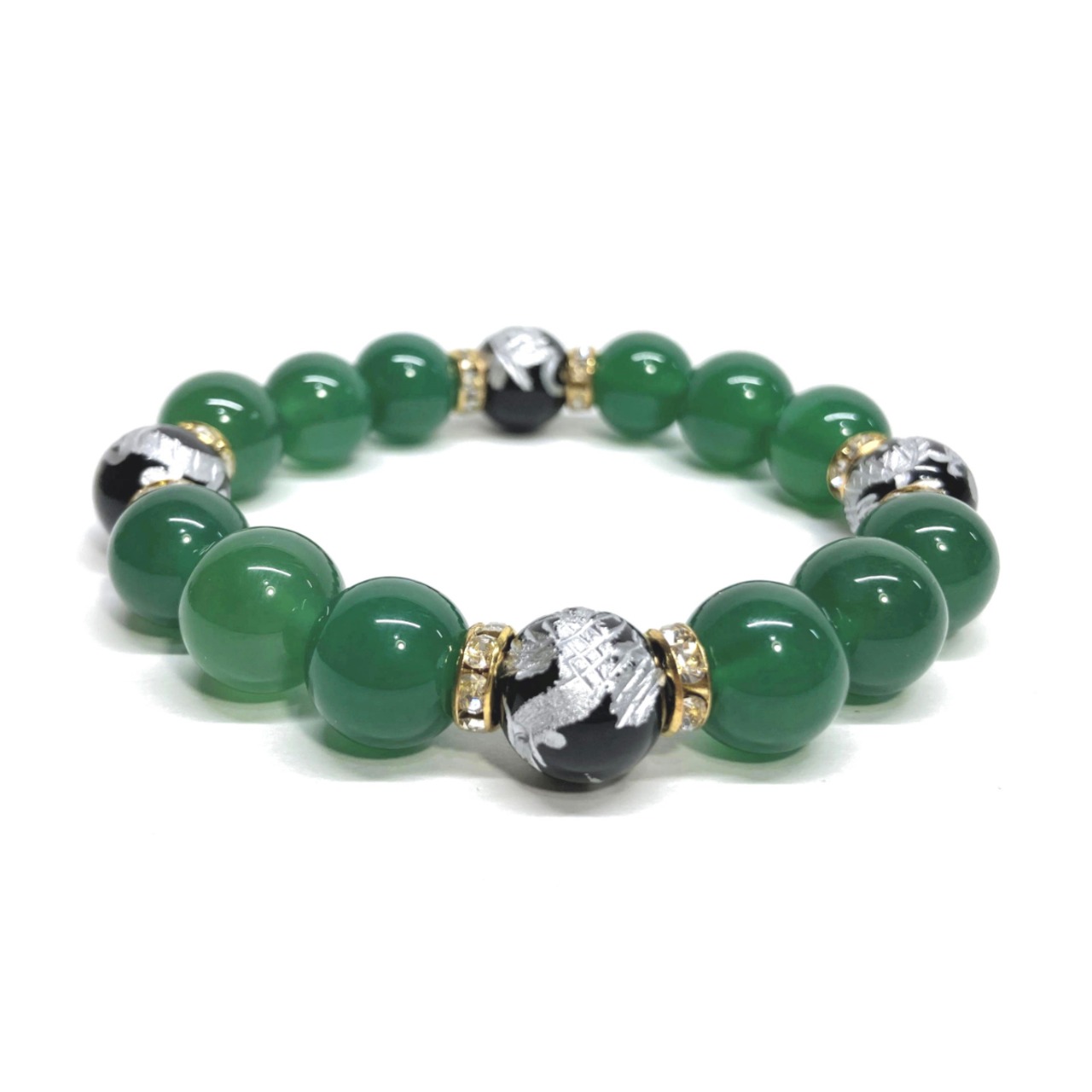 ご覧頂いているブレスレットは、四神獣銀彫オニキスと緑瑪瑙を組み合わせたブレスレット。守り神である四神とパワーストーンの組み合わせで運気の流れを引き寄せる強運ブレスレットです。シンプルなデザインで男女問わず、年齢問わずご使用頂けるデザインなっております。シンプルなデザインは日常のアクセントとして、仕事やビジネスカジュアル、パーティーや特別なイベントなど様々なシーン活用できます。また、ちょっと贈り物にも最適なブレスレットになっております。四神獣を身につけて厄災から身を守り、多くの運気を呼び込まれてください。
