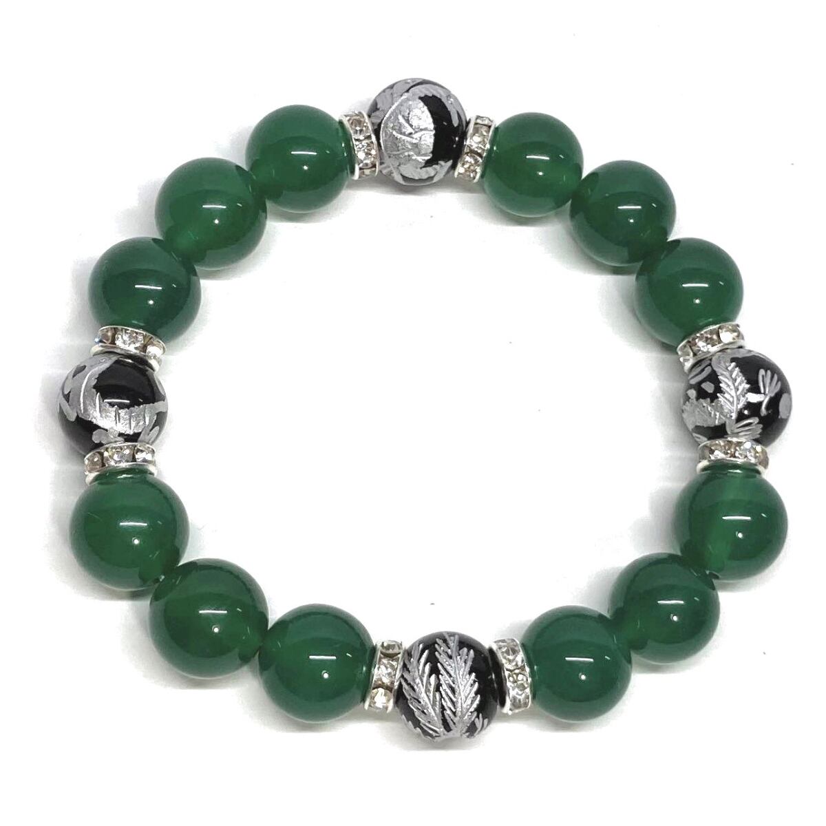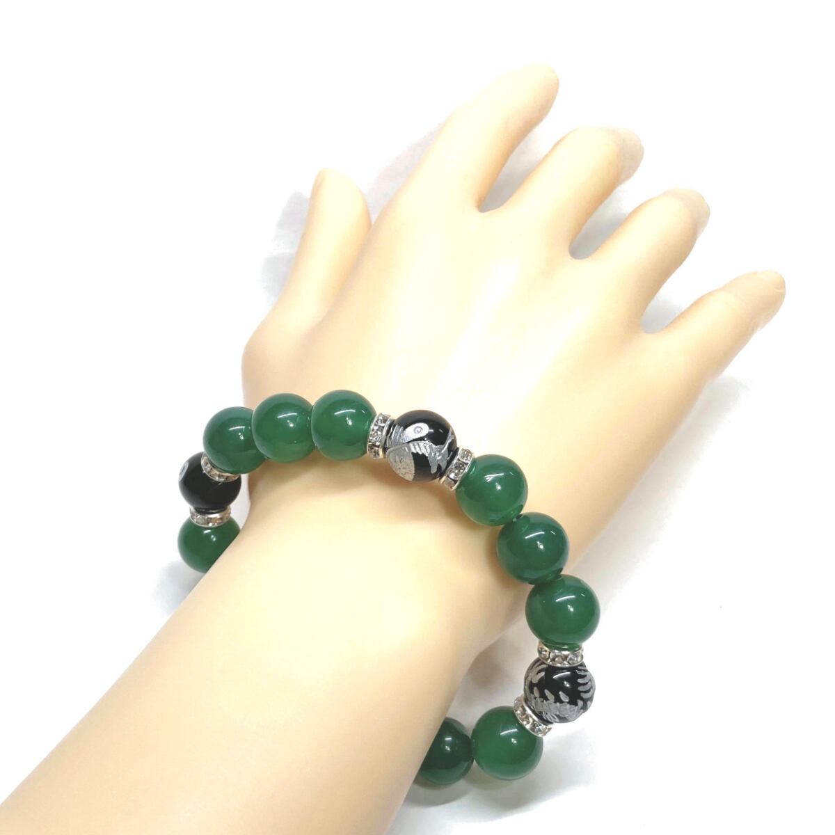 12mm 四神獣銀彫オニキス×緑瑪瑙 パワーストーン ブレスレット天然石 運気上昇 開運 ☆ 金運 健康運 お守り 青龍 白虎 玄武 朱雀 (ゴールド)メンズ・レディース 男性・女性 数珠ブレス 開運 ☆ | パワーストーン 天然石 Kinari&Co.