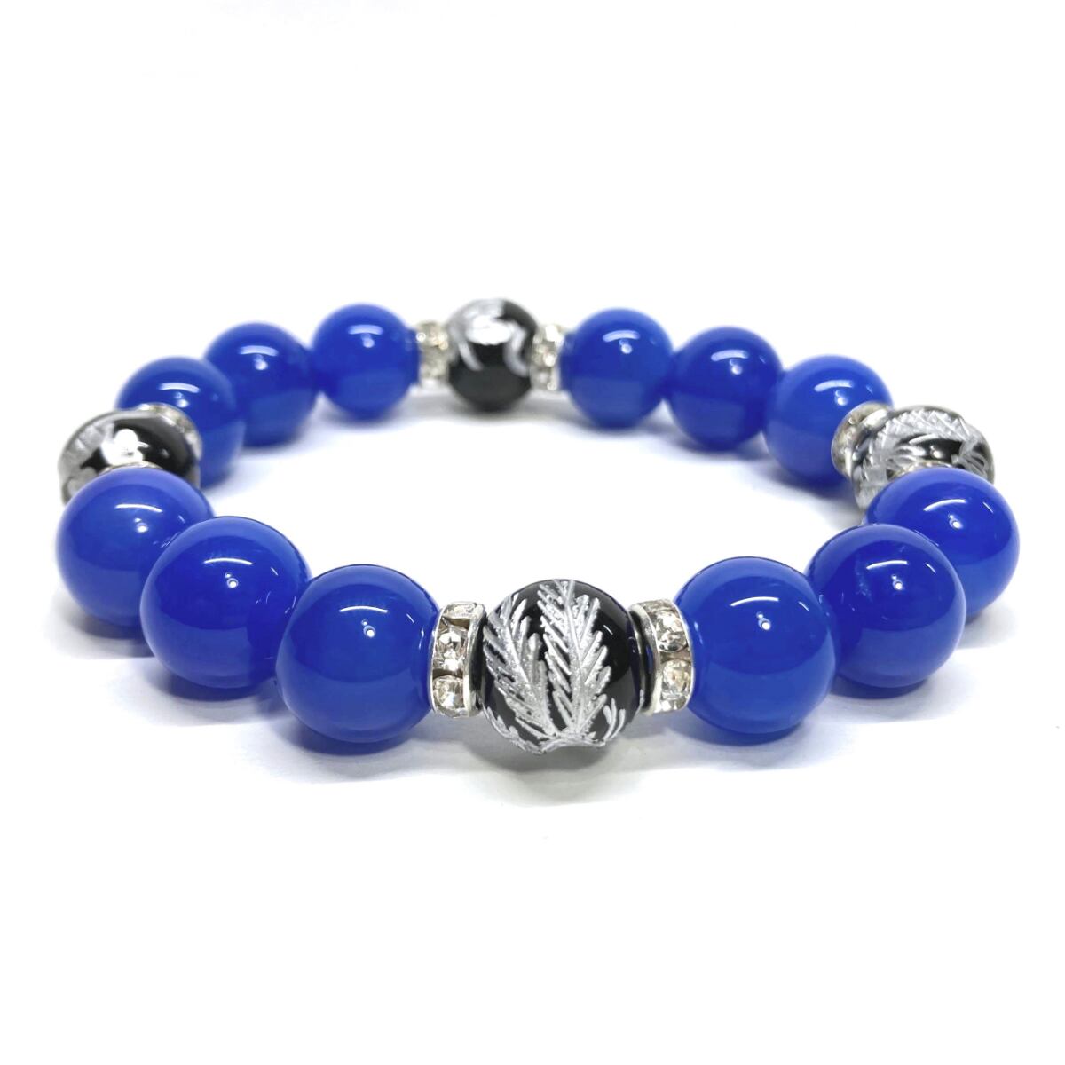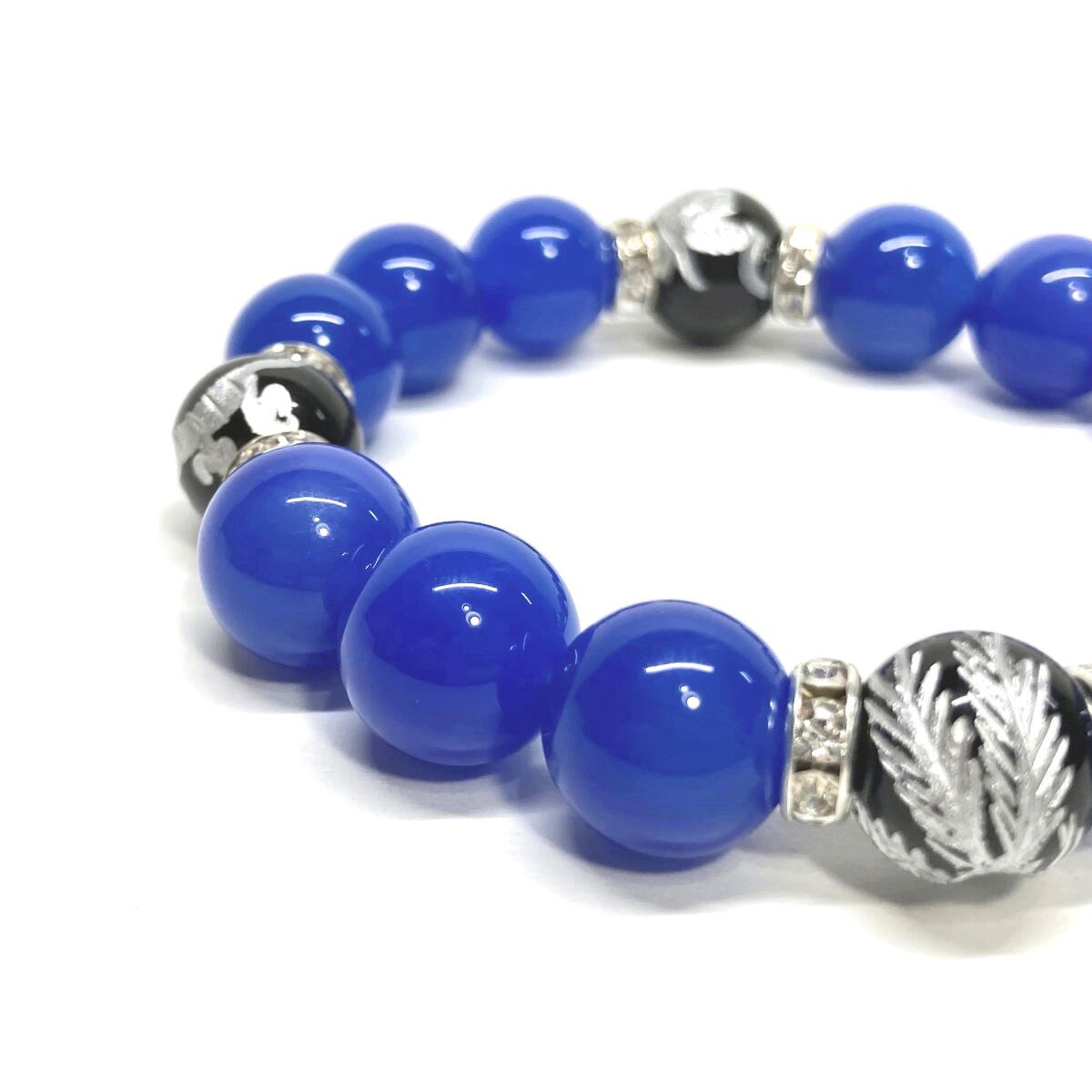 12mm 四神獣銀彫オニキス×青瑪瑙 パワーストーン ブレスレット天然石 運気上昇 開運 ☆ 金運 健康運 お守り 青龍 白虎 玄武 朱雀 (シルバー)メンズ・レディース 男性・女性 数珠ブレス 開運 ☆ | パワーストーン 天然石 Kinari&Co.