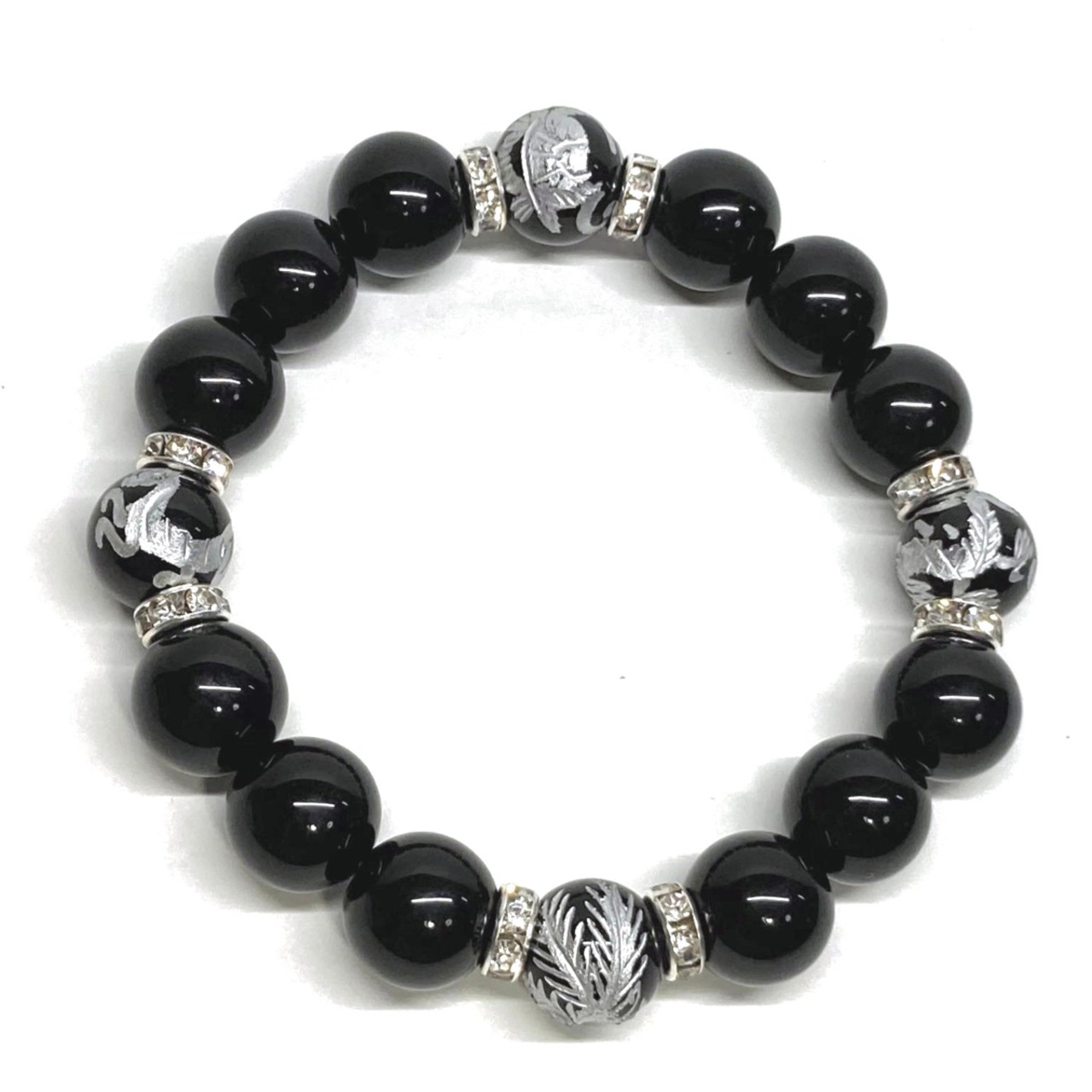 12mm 四神獣銀彫オニキス×オニキス パワーストーン ブレスレット天然石 運気上昇 開運 ☆ 金運 健康運 厄払い お守り 青龍 白虎 玄武 朱雀 (シルバー)メンズ・レディース 男性・女性 数珠ブレス 開運 ☆ | パワーストーン 天然石 Kinari&Co.