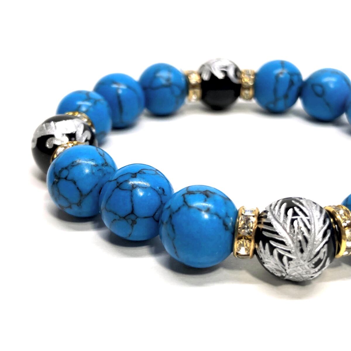 ご覧頂いているブレスレットは、四神獣銀彫オニキスとターコイズを組み合わせたブレスレット。守り神である四神とパワーストーンの組み合わせで運気の流れを引き寄せる強運ブレスレットです。シンプルなデザインで男女問わず、年齢問わずご使用頂けるデザインなっております。シンプルなデザインは日常のアクセントとして、仕事やビジネスカジュアル、パーティーや特別なイベントなど様々なシーン活用できます。また、ちょっと贈り物にも最適なブレスレットになっております。四神獣を身につけて厄災から身を守り、多くの運気を呼び込まれてください。