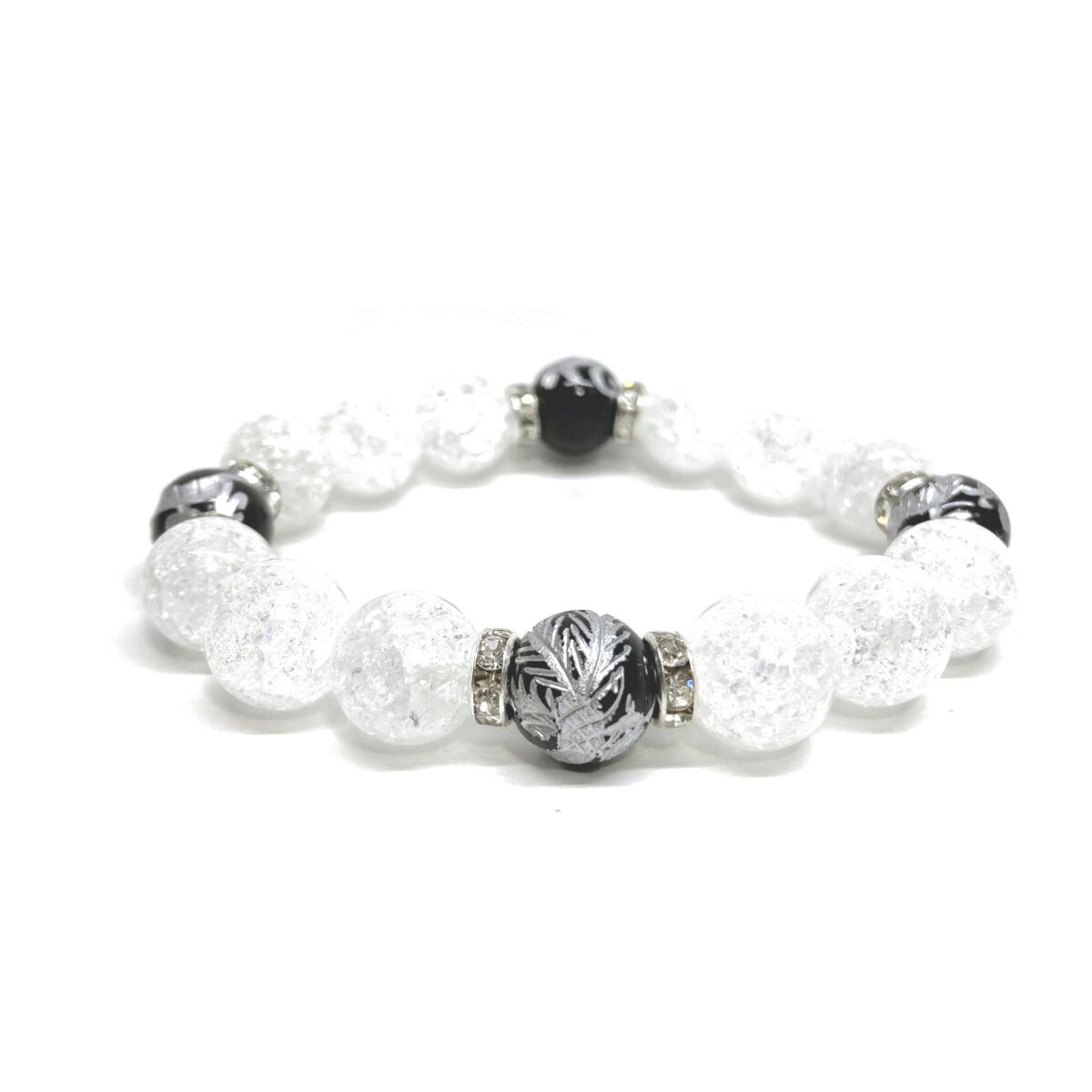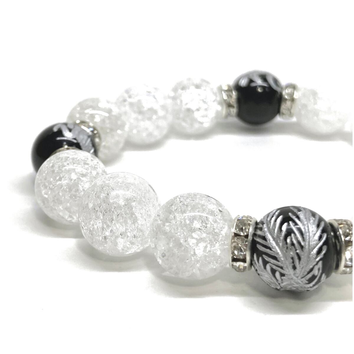 12mm 四神獣銀彫オニキス×クラック水晶 パワーストーン ブレスレット天然石 運気上昇 開運 ☆ 健康運 厄払い お守り 青龍 白虎 玄武 朱雀 (シルバー)メンズ・レディース 男性・女性 数珠ブレス 開運 ☆ | パワーストーン 天然石 Kinari&Co.