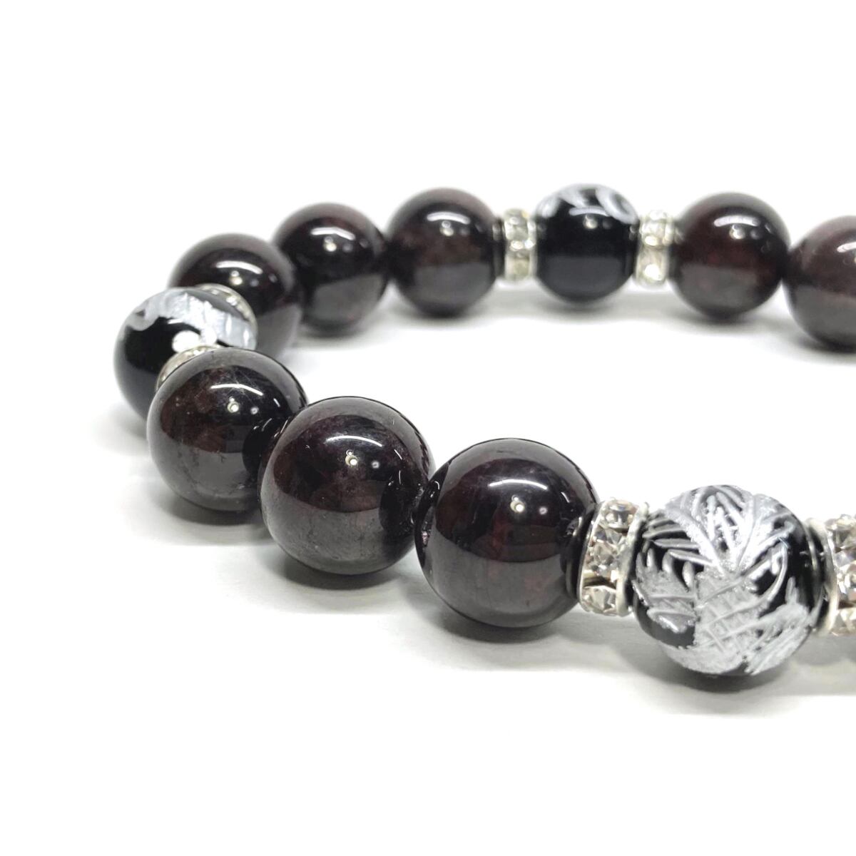 12mm 四神獣銀彫オニキス×ガーネット パワーストーン ブレスレット天然石 運気上昇 開運 ☆ 恋愛運 お守り 青龍 白虎 玄武 朱雀 1月誕生石 (シルバー)メンズ・レディース 男性・女性 数珠ブレス 開運 ☆ | パワーストーン 天然石 Kinari&Co.