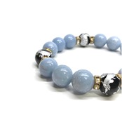 ご覧頂いているブレスレットは、四神獣銀彫オニキスとエンジェライトを組み合わせたブレスレット。守り神である四神とパワーストーンの組み合わせで運気の流れを引き寄せる強運ブレスレットです。シンプルなデザインで男女問わず、年齢問わずご使用頂けるデザインなっております。シンプルなデザインは日常のアクセントとして、仕事やビジネスカジュアル、パーティーや特別なイベントなど様々なシーン活用できます。また、ちょっと贈り物にも最適なブレスレットになっております。四神獣を身につけて厄災から身を守り、多くの運気を呼び込まれてください。
