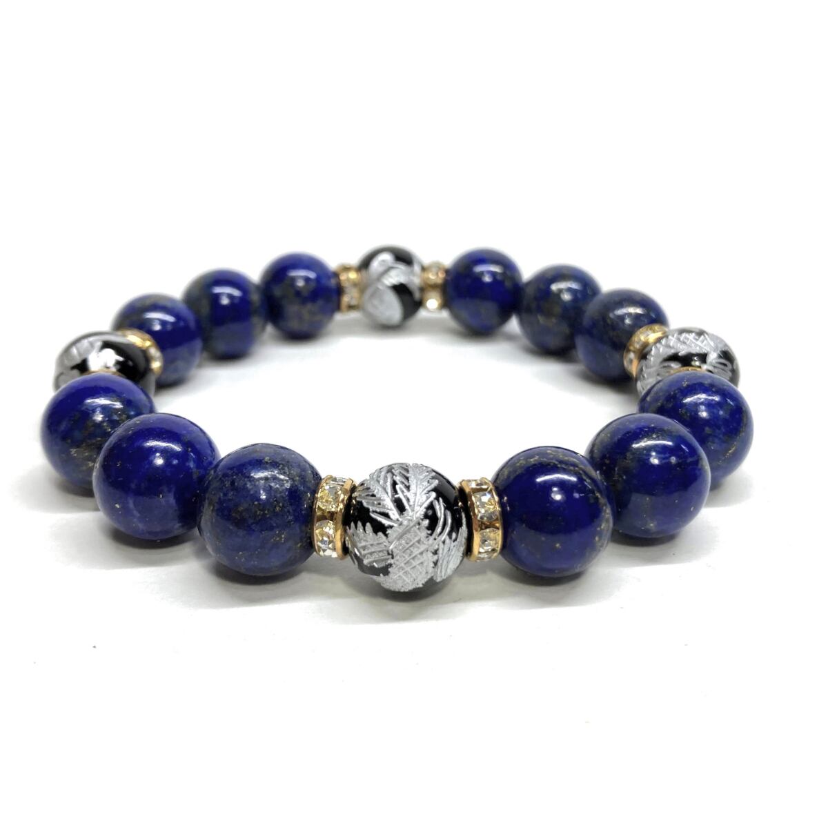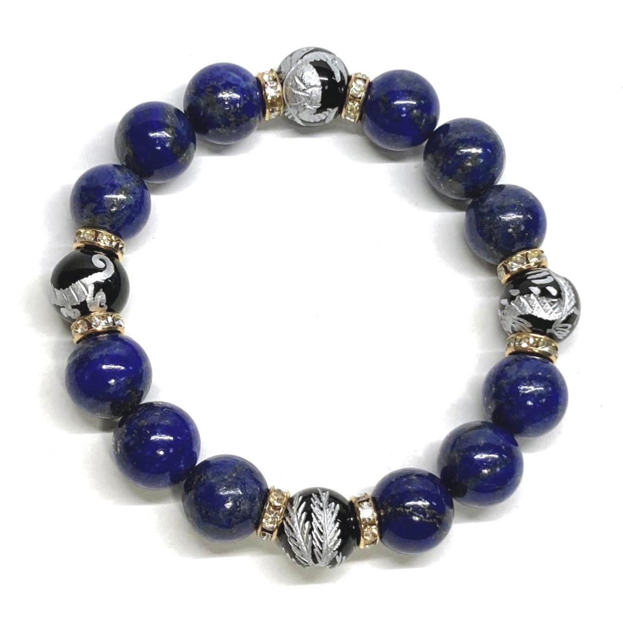12mm 四神獣銀彫オニキス×ラピスラズリ パワーストーン ブレスレット天然石 開運 ☆ 厄払い お守り 青龍 白虎 玄武 朱雀 9月・12月誕生石 (ゴールド)メンズ・レディース 男性・女性 数珠ブレス 開運 ☆ | パワーストーン 天然石 Kinari&Co.
