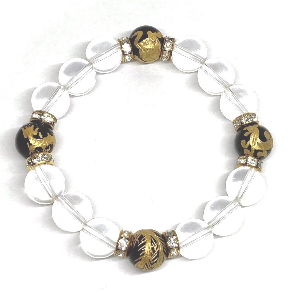 12mm 四神獣金彫オニキス×水晶 パワーストーン ブレスレット天然石 運気上昇 開運 ☆ 金運 恋愛運 お守り 青龍 白虎 玄武 朱雀 4月誕生石 (ゴールド)メンズ・レディース 男性・女性 数珠ブレス 開運 ☆ | パワーストーン 天然石 Kinari&Co.