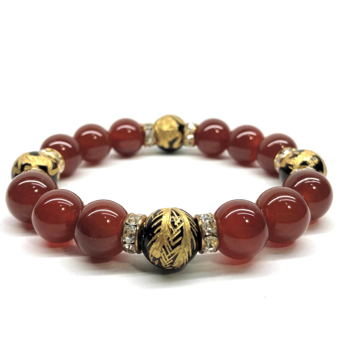 12mm 四神獣金彫オニキス×赤瑪瑙 パワーストーン ブレスレット天然石 運気上昇 開運 ☆ 金運 ギャンブル運 お守り 青龍 白虎 玄武 朱雀 (ゴールド)メンズ・レディース 男性・女性 数珠ブレス 開運 ☆ | パワーストーン 天然石 Kinari&Co.