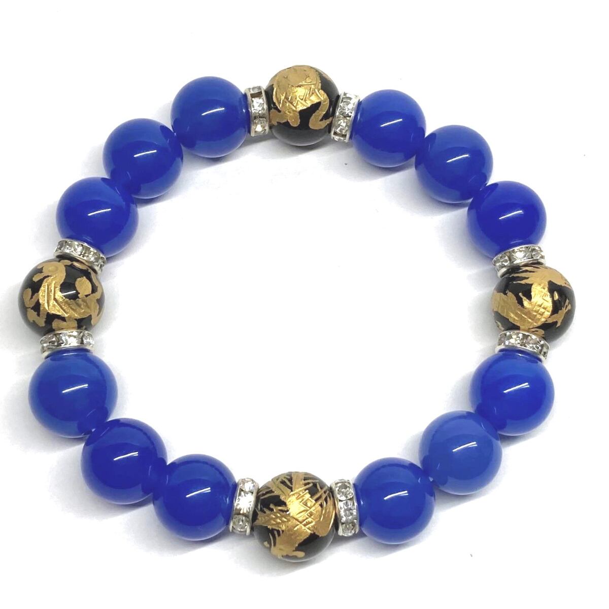 ご覧頂いているブレスレットは、四神獣金彫オニキスと青瑪瑙を組み合わせたブレスレット。守り神である四神とパワーストーンの組み合わせで運気の流れを引き寄せる強運ブレスレットです。シンプルなデザインで男女問わず、年齢問わずご使用頂けるデザインなっております。シンプルなデザインは日常のアクセントとして、仕事やビジネスカジュアル、パーティーや特別なイベントなど様々なシーン活用できます。また、ちょっと贈り物にも最適なブレスレットになっております。四神獣を身につけて厄災から身を守り、多くの運気を呼び込まれてください。