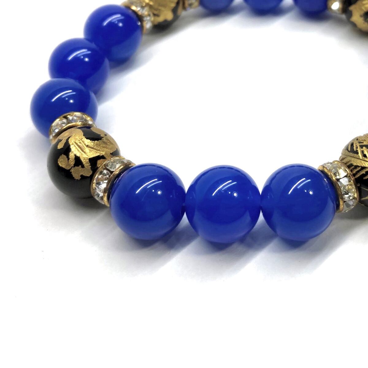12mm 四神獣金彫オニキス×青瑪瑙 パワーストーン ブレスレット天然石 運気上昇 開運 ☆ 金運 健康運 お守り 青龍 白虎 玄武 朱雀 (ゴールド)メンズ・レディース 男性・女性 数珠ブレス 開運 ☆ | パワーストーン 天然石 Kinari&Co.