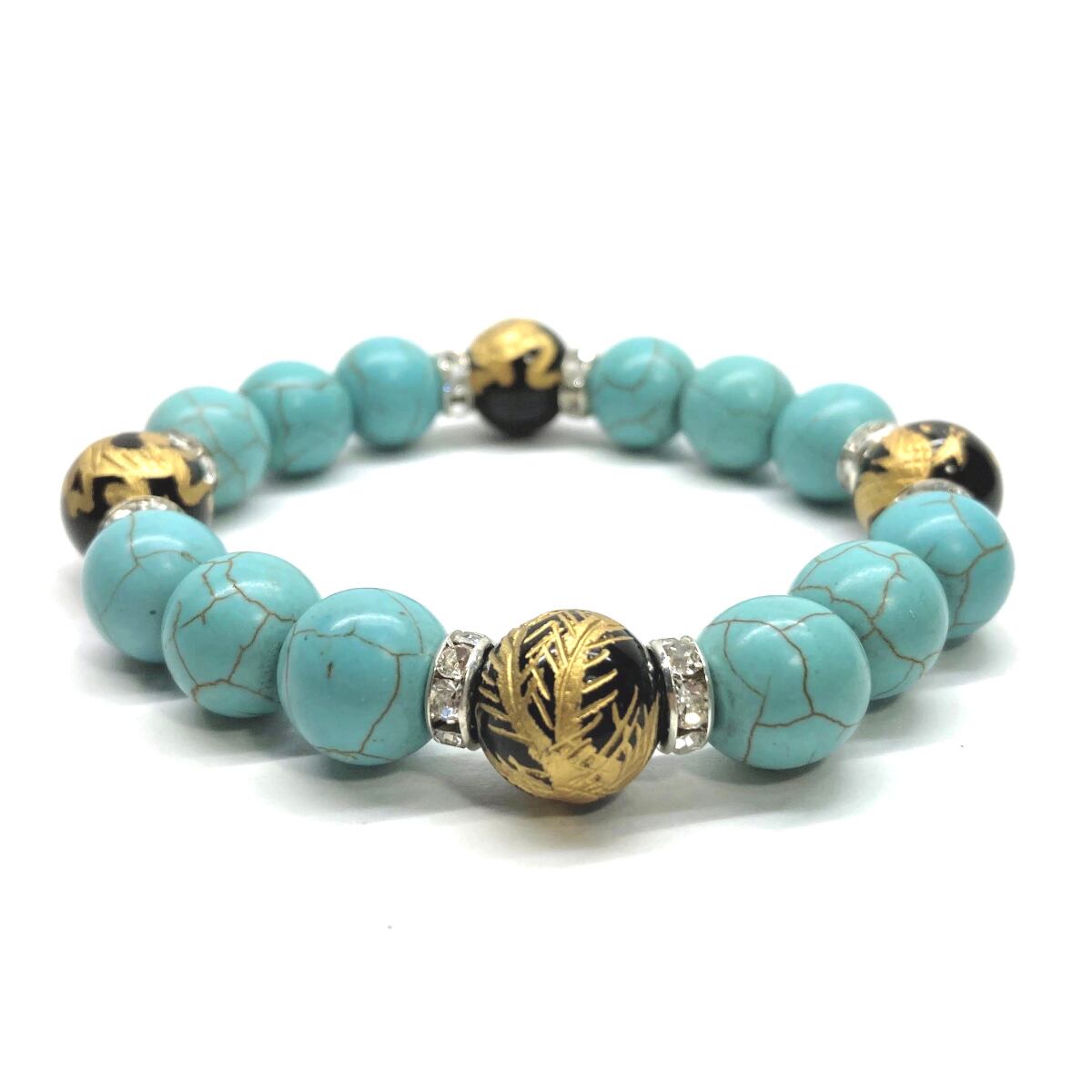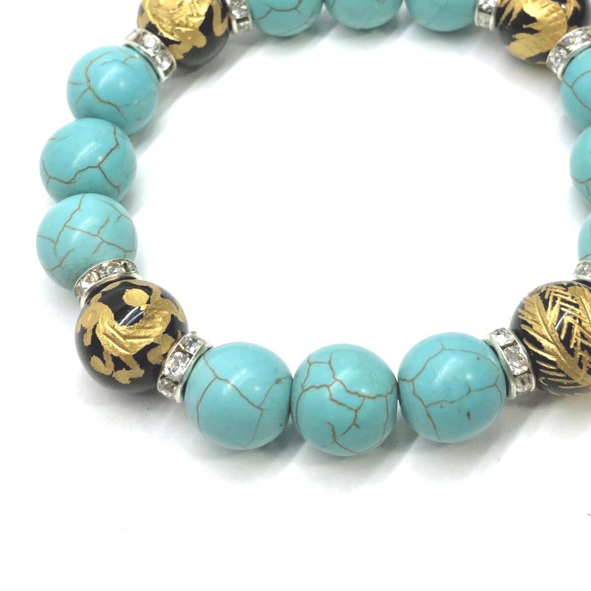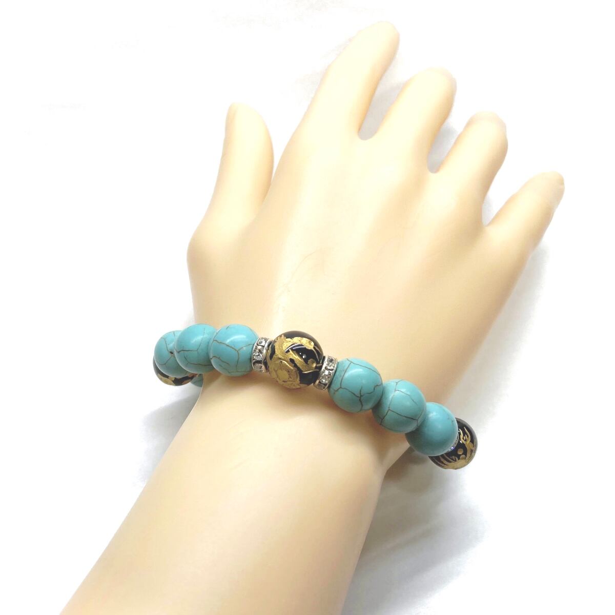 ご覧頂いているブレスレットは、四神獣金彫オニキスとターコイズを組み合わせたブレスレット。守り神である四神とパワーストーンの組み合わせで運気の流れを引き寄せる強運ブレスレットです。シンプルなデザインで男女問わず、年齢問わずご使用頂けるデザインなっております。シンプルなデザインは日常のアクセントとして、仕事やビジネスカジュアル、パーティーや特別なイベントなど様々なシーン活用できます。また、ちょっと贈り物にも最適なブレスレットになっております。四神獣を身につけて厄災から身を守り、多くの運気を呼び込まれてください。