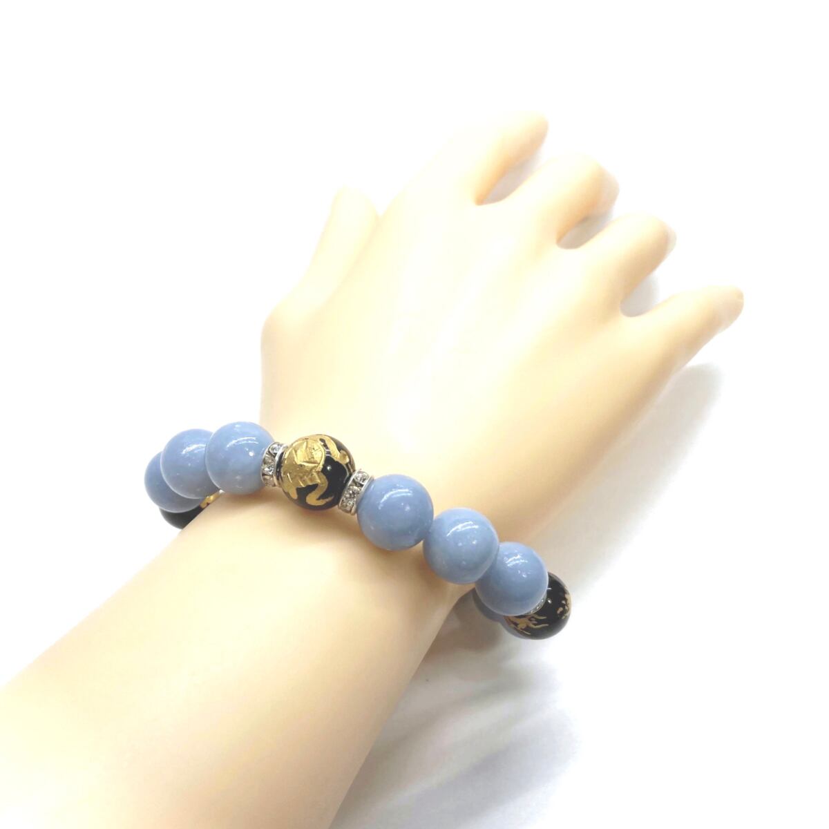 ご覧頂いているブレスレットは、四神獣金彫オニキスとエンジェライトを組み合わせたブレスレット。守り神である四神とパワーストーンの組み合わせで運気の流れを引き寄せる強運ブレスレットです。シンプルなデザインで男女問わず、年齢問わずご使用頂けるデザインなっております。シンプルなデザインは日常のアクセントとして、仕事やビジネスカジュアル、パーティーや特別なイベントなど様々なシーン活用できます。また、ちょっと贈り物にも最適なブレスレットになっております。四神獣を身につけて厄災から身を守り、多くの運気を呼び込まれてください。