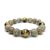 12mm 四神獣金彫オニキス×インプレッションストーン パワーストーン ブレスレット天然石 運気上昇 開運 ☆ お守り 青龍 白虎 玄武 朱雀 (ゴールド)メンズ・レディース 男性・女性 数珠ブレス 開運 ☆ | パワーストーン 天然石 Kinari&Co.
