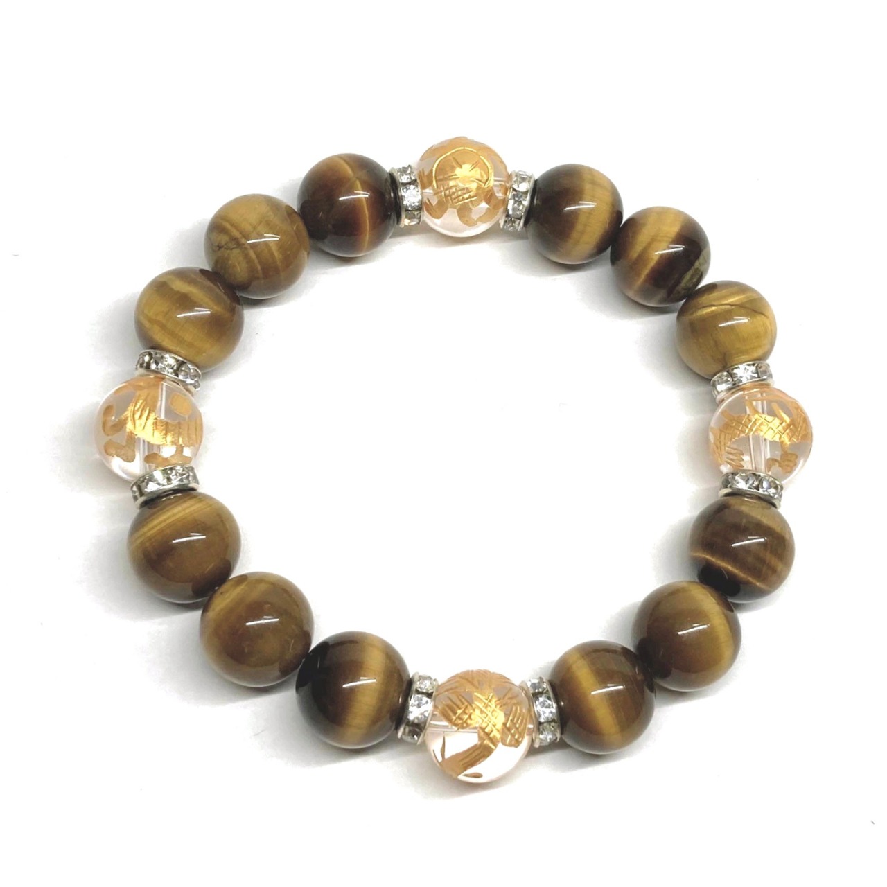 ご覧頂いているブレスレットは、四神獣金彫水晶とタイガーアイを組み合わせたブレスレット。守り神である四神とパワーストーンの組み合わせで運気の流れを引き寄せる強運ブレスレットです。シンプルなデザインで男女問わず、年齢問わずご使用頂けるデザインなっております。シンプルなデザインは日常のアクセントとして、仕事やビジネスカジュアル、パーティーや特別なイベントなど様々なシーン活用できます。また、ちょっと贈り物にも最適なブレスレットになっております。四神獣を身につけて厄災から身を守り、多くの運気を呼び込まれてください。