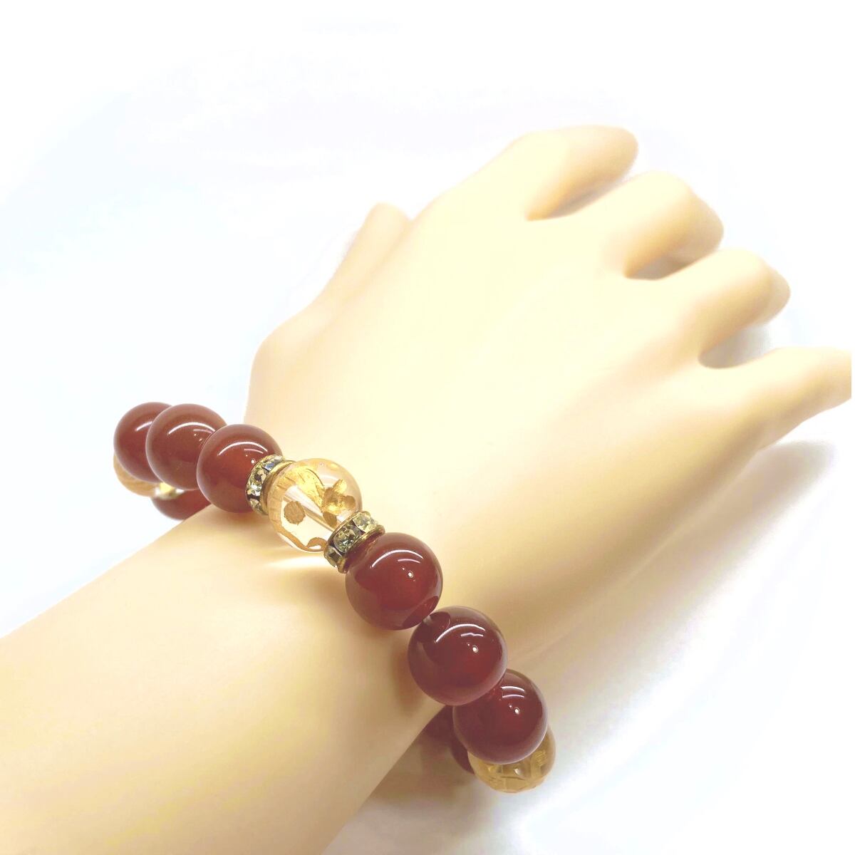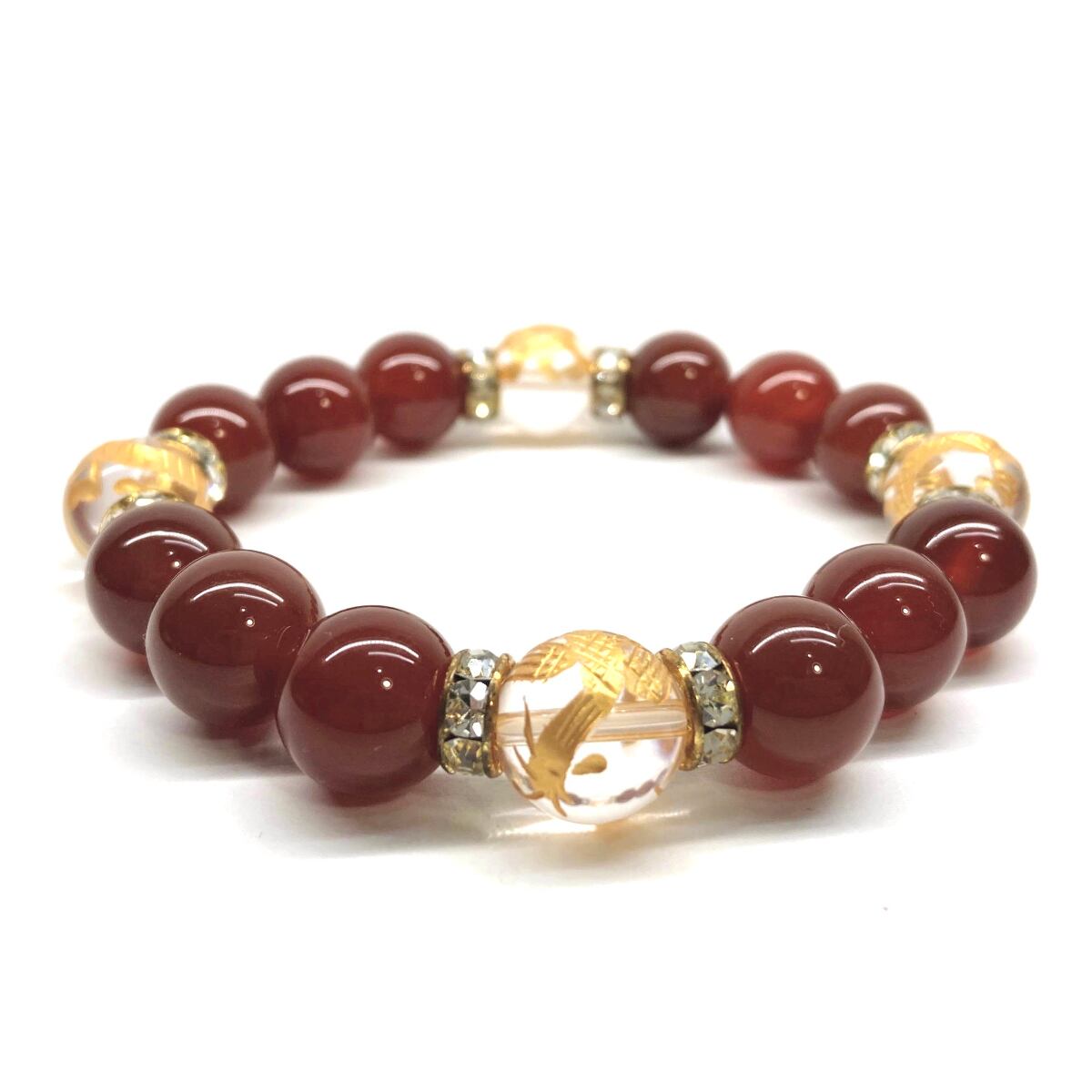 12mm 四神獣金彫水晶×赤瑪瑙 パワーストーン ブレスレット天然石 運気上昇 開運 ☆ 金運 ギャンブル運 お守り 青龍 白虎 玄武 朱雀 (ゴールド)メンズ・レディース 男性・女性 数珠ブレス 開運 ☆ | パワーストーン 天然石 Kinari&Co.