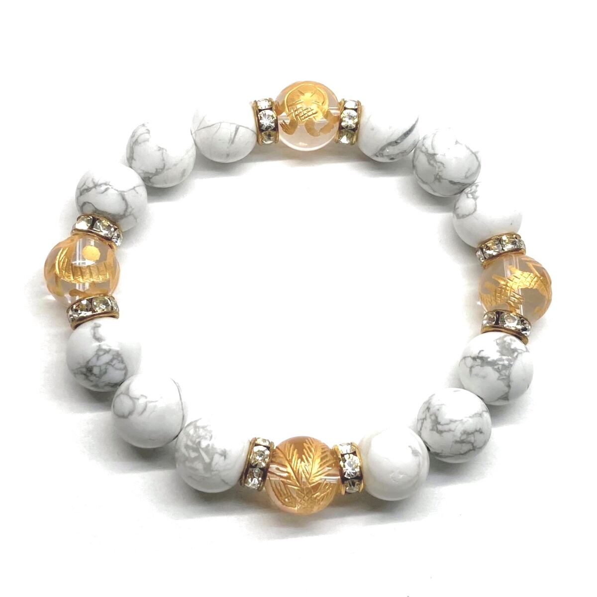 ご覧頂いているブレスレットは、四神獣金彫水晶とハウライトを組み合わせたブレスレット。守り神である四神とパワーストーンの組み合わせで運気の流れを引き寄せる強運ブレスレットです。シンプルなデザインで男女問わず、年齢問わずご使用頂けるデザインなっております。シンプルなデザインは日常のアクセントとして、仕事やビジネスカジュアル、パーティーや特別なイベントなど様々なシーン活用できます。また、ちょっと贈り物にも最適なブレスレットになっております。四神獣を身につけて厄災から身を守り、多くの運気を呼び込まれてください。