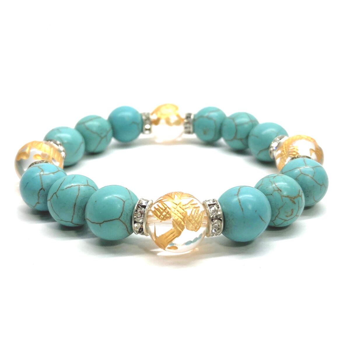 ご覧頂いているブレスレットは、四神獣金彫水晶とターコイズを組み合わせたブレスレット。守り神である四神とパワーストーンの組み合わせで運気の流れを引き寄せる強運ブレスレットです。シンプルなデザインで男女問わず、年齢問わずご使用頂けるデザインなっております。シンプルなデザインは日常のアクセントとして、仕事やビジネスカジュアル、パーティーや特別なイベントなど様々なシーン活用できます。また、ちょっと贈り物にも最適なブレスレットになっております。四神獣を身につけて厄災から身を守り、多くの運気を呼び込まれてください。