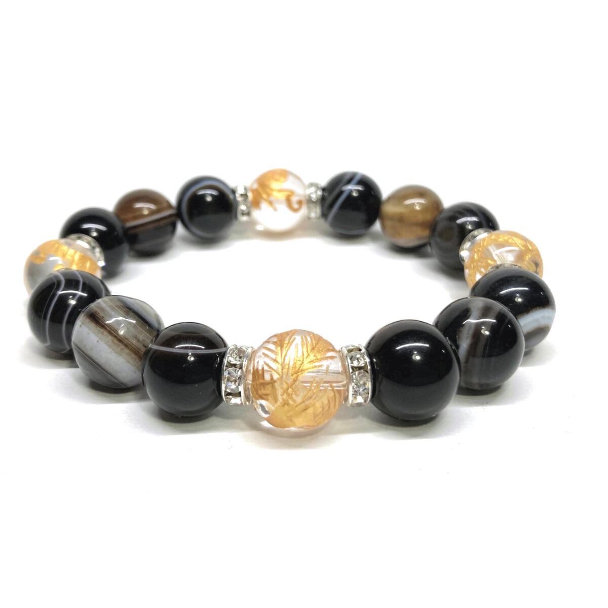 ご覧頂いているブレスレットは、四神獣金彫水晶とチベットアゲート(天眼石)を組み合わせたブレスレット。守り神である四神とパワーストーンの組み合わせで運気の流れを引き寄せる強運ブレスレットです。シンプルなデザインで男女問わず、年齢問わずご使用頂けるデザインなっております。シンプルなデザインは日常のアクセントとして、仕事やビジネスカジュアル、パーティーや特別なイベントなど様々なシーン活用できます。また、ちょっと贈り物にも最適なブレスレットになっております。四神獣を身につけて厄災から身を守り、多くの運気を呼び込まれてください。