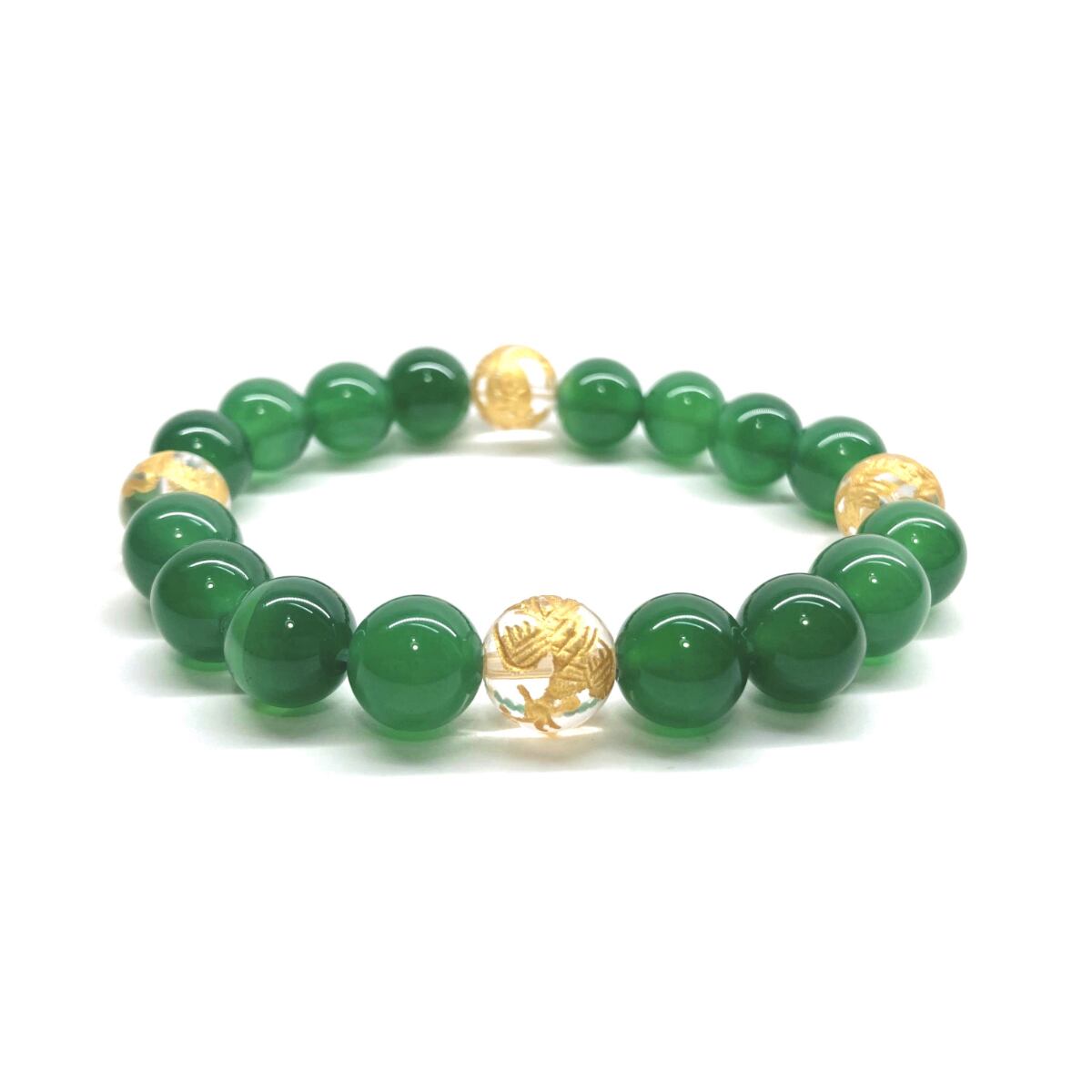 ご覧頂いているブレスレットは、四神獣金彫水晶と緑瑪瑙を組み合わせたブレスレット。守り神である四神とパワーストーンの組み合わせで運気の流れを引き寄せる強運ブレスレットです。シンプルなデザインで男女問わず、年齢問わずご使用頂けるデザインなっております。シンプルなデザインは日常のアクセントとして、仕事やビジネスカジュアル、パーティーや特別なイベントなど様々なシーン活用できます。また、ちょっと贈り物にも最適なブレスレットになっております。四神獣を身につけて厄災から身を守り、多くの運気を呼び込まれてください。