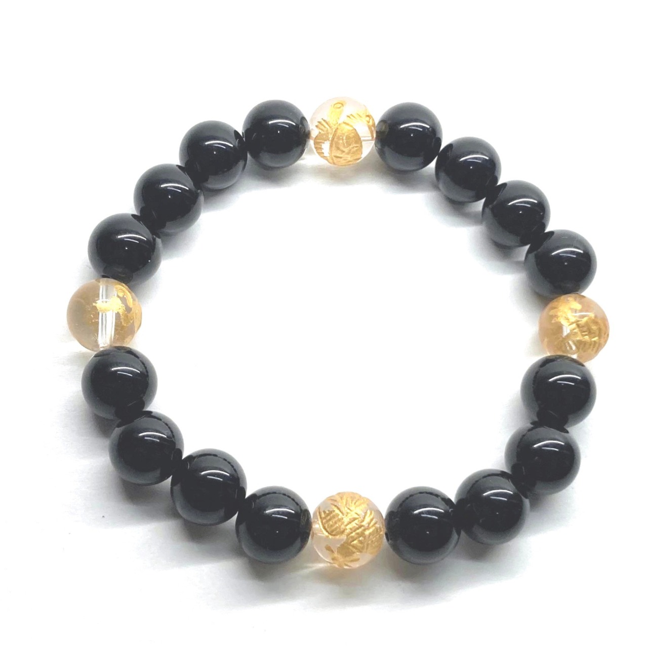ご覧頂いているブレスレットは、四神獣金彫水晶とオニキスを組み合わせたブレスレット。守り神である四神とパワーストーンの組み合わせで運気の流れを引き寄せる強運ブレスレットです。シンプルなデザインで男女問わず、年齢問わずご使用頂けるデザインなっております。シンプルなデザインは日常のアクセントとして、仕事やビジネスカジュアル、パーティーや特別なイベントなど様々なシーン活用できます。また、ちょっと贈り物にも最適なブレスレットになっております。四神獣を身につけて厄災から身を守り、多くの運気を呼び込まれてください。