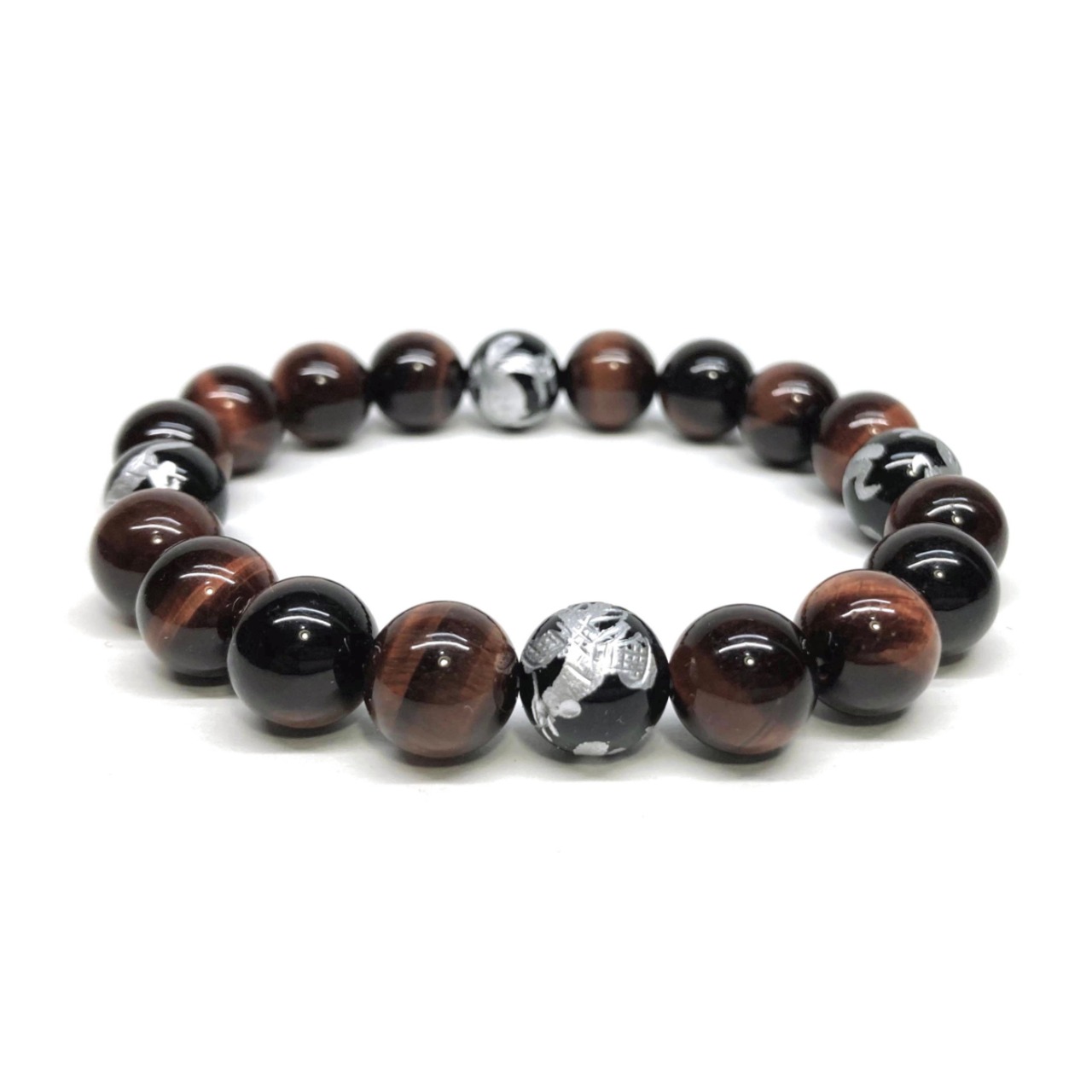 10mm 四神獣銀彫オニキス×レッドタイガーアイ パワーストーン ブレスレット天然石 運気上昇 開運 金運 恋愛運 お守り 青龍 白虎 玄武 朱雀 ☆ | パワーストーン 天然石 Kinari&Co.