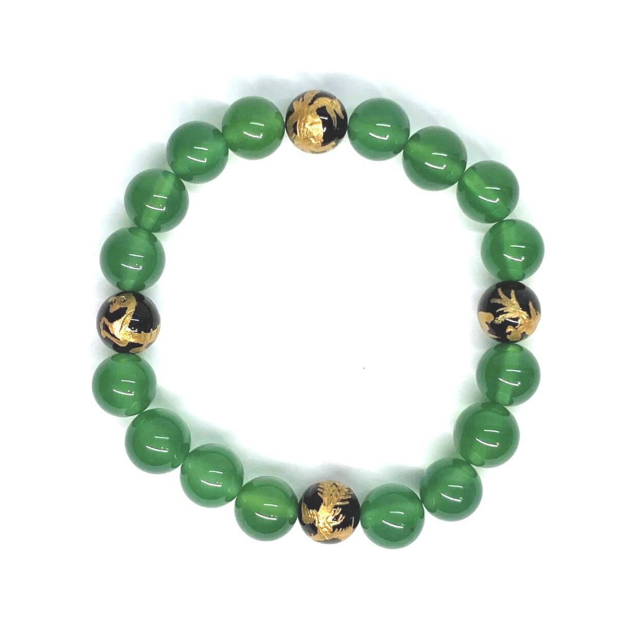 ご覧頂いているブレスレットは、四神獣金彫オニキスと緑瑪瑙を組み合わせたブレスレット。守り神である四神とパワーストーンの組み合わせで運気の流れを引き寄せる強運ブレスレットです。シンプルなデザインで男女問わず、年齢問わずご使用頂けるデザインなっております。シンプルなデザインは日常のアクセントとして、仕事やビジネスカジュアル、パーティーや特別なイベントなど様々なシーン活用できます。また、ちょっと贈り物にも最適なブレスレットになっております。四神獣を身につけて厄災から身を守り、多くの運気を呼び込まれてください。