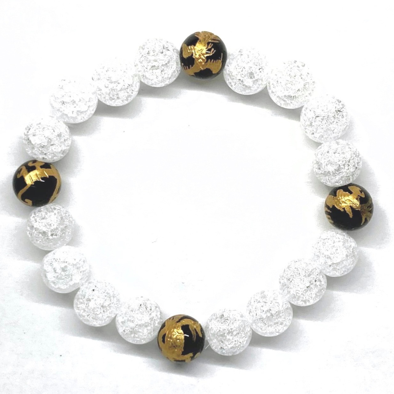 ご覧頂いているブレスレットは、四神獣金彫オニキスとクラック水晶を組み合わせたブレスレット。守り神である四神とパワーストーンの組み合わせで運気の流れを引き寄せる強運ブレスレットです。シンプルなデザインで男女問わず、年齢問わずご使用頂けるデザインなっております。シンプルなデザインは日常のアクセントとして、仕事やビジネスカジュアル、パーティーや特別なイベントなど様々なシーン活用できます。また、ちょっと贈り物にも最適なブレスレットになっております。四神獣を身につけて厄災から身を守り、多くの運気を呼び込まれてください。