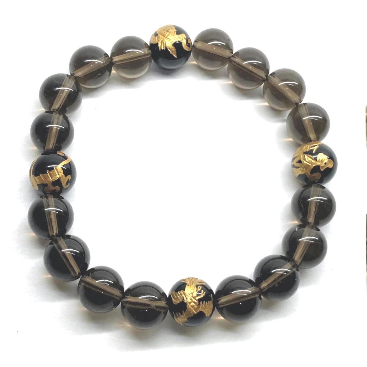 10mm 四神獣金彫オニキス×スモーキークォーツ パワーストーン ブレスレット天然石 運気上昇 開運 金運 恋愛運 お守り 青龍 白虎 玄武 朱雀 ☆ | パワーストーン 天然石 Kinari&Co.