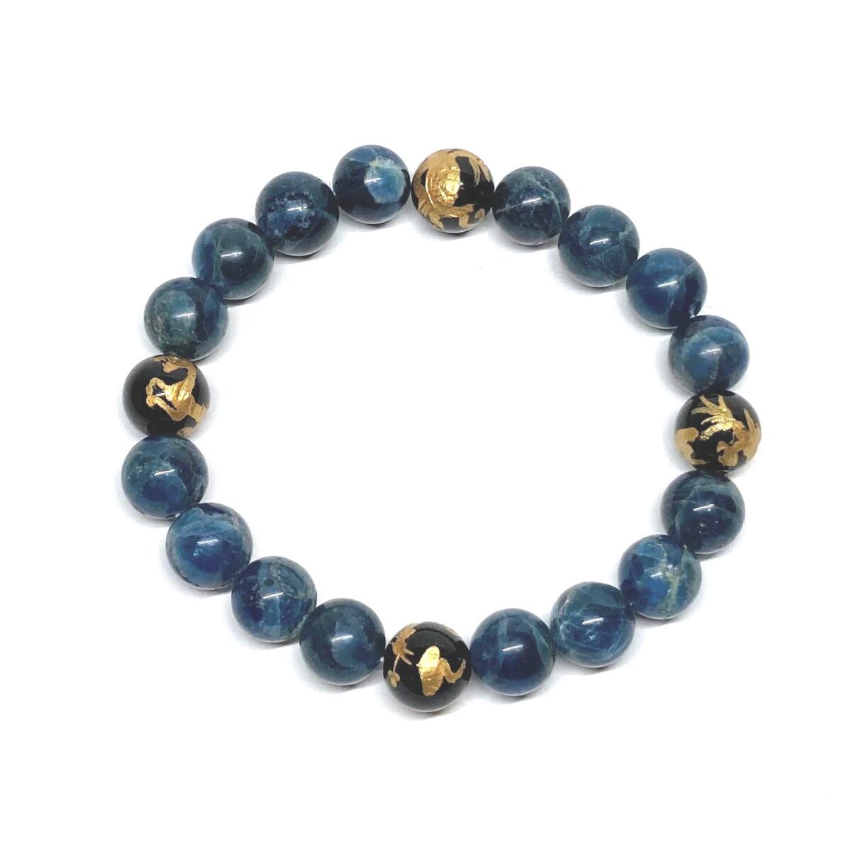 ご覧頂いているブレスレットは、四神獣金彫オニキスとアパタイトを組み合わせたブレスレット。守り神である四神とパワーストーンの組み合わせで運気の流れを引き寄せる強運ブレスレットです。シンプルなデザインで男女問わず、年齢問わずご使用頂けるデザインなっております。シンプルなデザインは日常のアクセントとして、仕事やビジネスカジュアル、パーティーや特別なイベントなど様々なシーン活用できます。また、ちょっと贈り物にも最適なブレスレットになっております。四神獣を身につけて厄災から身を守り、多くの運気を呼び込まれてください。