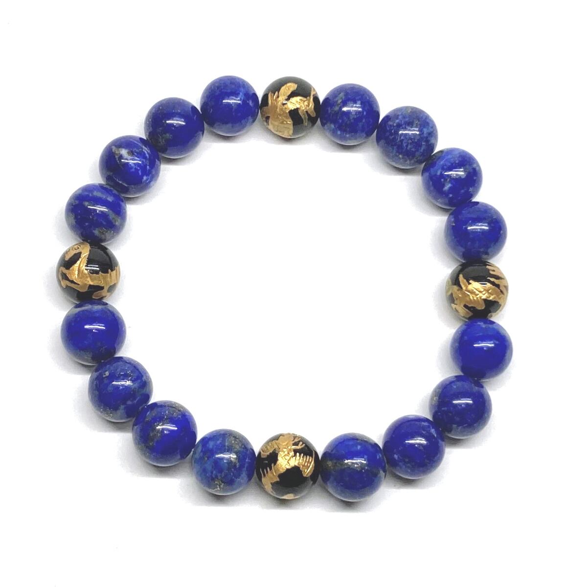 10mm 四神獣金彫オニキス×ラピスラズリ パワーストーン ブレスレット天然石 運気上昇 開運 幸運 金運 恋愛運 お守り 青龍 白虎 玄武 朱雀 ☆ | パワーストーン 天然石 Kinari&Co.