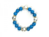 こちらは、12mm玉のターコイズと水晶を使用したブレスレットです。石との間にはロンデルを挟み高級感を演出しています。シンプルなデザインですのでどんなコーディネートとも合わせ易いブレスレットです。石大きさは12mm玉です。内周約18cmです。気になる方は是非この機会にどうぞ。