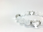 こちらは、12mm玉のクラック水晶と水晶を使用した天然石ブレスレットです。石との間にはロンデルを挟み高級感を演出しています。シンプルなデザインですのでどんなコーディネートとも合わせ易いブレスレットです。石大きさは12mm玉です。内周約18cmです。気になる方は是非この機会にどうぞ。