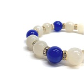 こちらは、ムーンストーンと青瑪瑙を組み合わせたパワーストーンブレスレットです。間にはロンデルを挟み高級感あるデザインに仕上げております。石大きさは12mm玉を使用して内周 約18cmです。気になる方は是非この機会にどうぞ。
