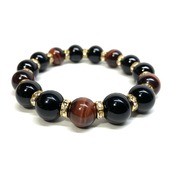 モリオン&レッドタイガーアイ パワーストーン ブレスレット 天然石ブレス (ゴールド) 12mm 幸運 開運 厄払い メンズ 男性 ☆