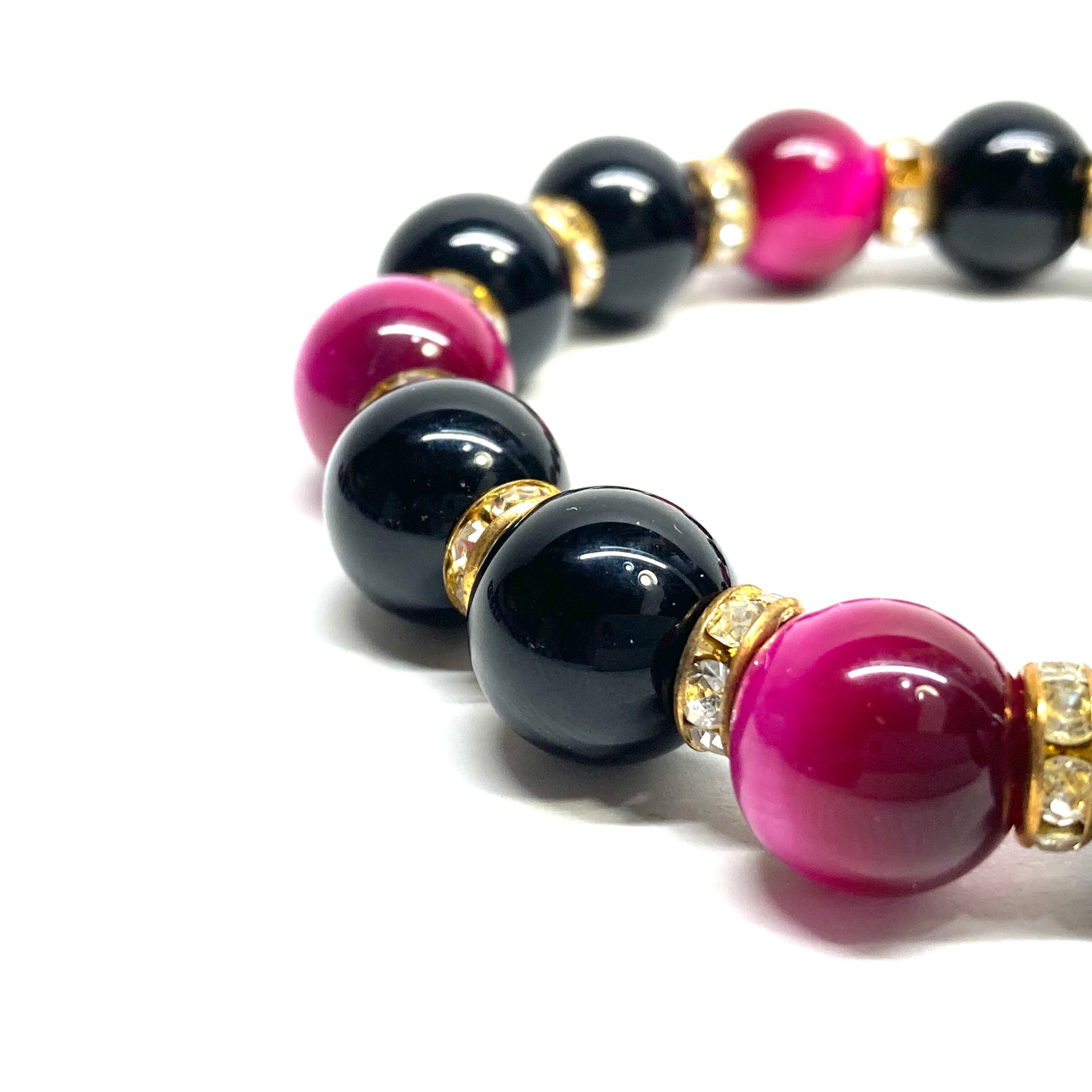こちらは、モリオンとピンクタイガーアイを組み合わせたパワーストーンブレスレットです。間にはロンデルを挟み高級感あるデザインに仕上げております。石大きさは12mm玉を使用して内周 約18cmです。気になる方は是非この機会にどうぞ。
