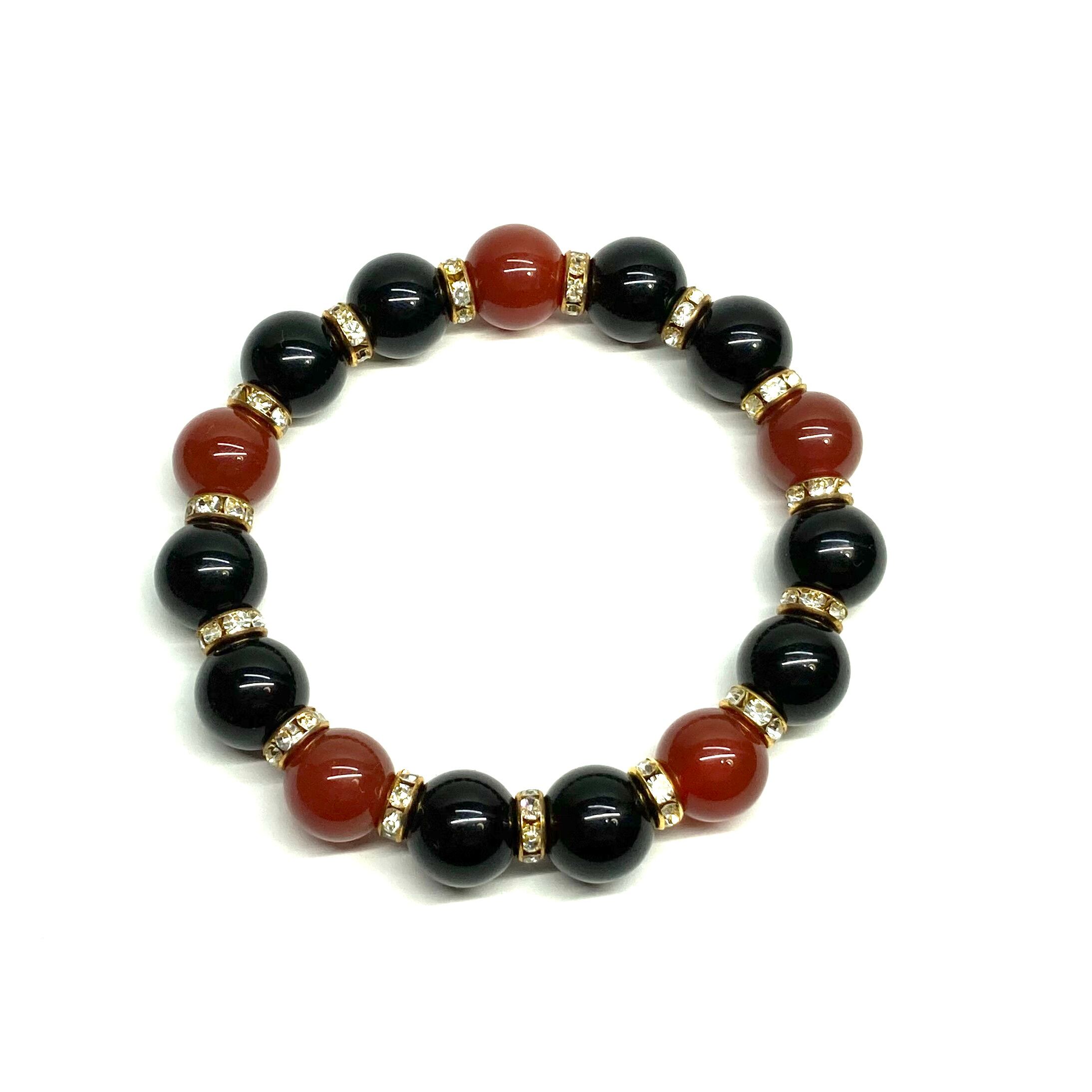 モリオン&赤瑪瑙 パワーストーン ブレスレット 天然石ブレス (ゴールド) 12mm 幸運 開運 厄払い メンズ 男性 ☆