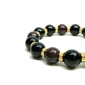 モリオン&ガーネット パワーストーン ブレスレット 天然石ブレス (ゴールド) 12mm 幸運 開運 厄払い メンズ 男性 ☆