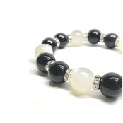 こちらは、モリオンとムーンストーンを組み合わせたパワーストーンブレスレットです。間にはロンデルを挟み高級感あるデザインに仕上げております。石大きさは12mm玉を使用して内周 約18cmです。気になる方は是非この機会にどうぞ。